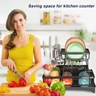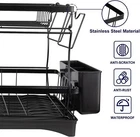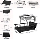 Feature: 【Large Capacity for Small Kitchen】 The Top Layer of 2 Tier Dish Drying Rack Can Store 10 Plates and Pots, the Bottom Layer Can Keep 14 Bowls, the Side Cutlery Rack Can Hold Utensils, One Side on Holds 4 Cups and Another Side Can Keep Cutting Boards. Great for a Small Kitchen, Make Your Kitchen Work Easier. 【Keep Counter Dry】 There is a Water Receiving Tray at The Bottom of The Dish Rack. The Water Receiving Tray has Its Own Water Outlet Pipe. The Water Dripping from the Dishes is Directly Discharged from the Water Pipe. There is Need to Use the Water Receiving Tray to Pour Water Like other Products. It is Easy to Clean and Prevent Wetting Your Countertop. 【Easy to Install】 Our Dish Drainer Rack Set Come with a Cup Holder, Cutting Board/Cookie Sheet Holder, Knife and Utensil Holder, and Extra Drying Mat. holes, tools, screws, it Only Takes a Few Minutes to Install a Drying Rack with a Simple Snap-Fit. 【Space Saving】 For More Flexible and Convenient Use, This Dish Racks for Kitchen Counter Can be Placed According to the Kitchen Layout. Making Full Use of The Kitchen Space Such as Countertops, Corners, Windowsills, etc, Without Wasting Every Inch of Space in The Kitchen. 【High Quality & Thoughtful Design】 The Drying Rack for Kitchen Counter is Made of High-strength Iron Carefully Polished with High-Temperature Lacquer Which is Anti Corrosion and Anti-Rust.All Corners Are Rounded and Polished to Avoid Scratching and Damaging Items, and the Hollow Card Slot Design Makes It Easier to Pick Up the Dishes Without Worrying About Falling. 【Dish Rack is Gifts for Families】 Amazing Gift for the Holidays - Our Dish Rack is Suitable for Holiday Gifts, Such As Mother`s Day, Father `s Day, 4th of July, Hanukkah, Christmas ,Halloween Gifts, Easter, Valentine`s Day, Thanksgiving, Year`s , Birthday, Wedding, Anniversary, Etc. Specifications: Material: Alloy (carbon steel) Product size: about 49*30*34cm/19.3*11.8*13.4in Packing List: Dish rack*1