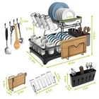 Features: 2-Tier With Large Capacity:Two-tier design with size of 18.9x12.2x13in,the dish drying rack provides large space for storing tableware of varies sizes such as plates,dishes,mugs,pot lids and bowls. Together with a utensil holder and a cup rack to hold knives,forks,spoons,chopsticks and 4 cups. Meet your needs for storing kitchenware with this 2-tier dish rack. Keep Tidy & Save Space:This dish racks for kitchen counter can be placed to anywhere according to the kitchen layout. Make full use of the kitchen space such as countertops,corners,windowsills,etc,without wasting every inch of space in the kitchen,keeping your countertop clean and organized. Automatic Drainage:Designed with a drainage hole on the tray and an adjustable drainage spout under the tray,it can drain excess wa Over Sink Dish Drying Rack 2-Tier Stainless Steel Kitchen Shelf Cutlery Drainer Features: 2-Tier With Large Capacity: Two-tier design with size of 18.9x12.2x13in,the dish drying rack provides large space for storing tableware of varies sizes such as plates,dishes,mugs,pot lids and bowls. Together with a utensil holder and a cup rack to hold knives,forks,spoons,chopsticks and 4 cups. Meet your needs for storing kitchenware with this 2-tier dish rack. Keep Tidy & Save Space: This dish racks for kitchen counter can be placed to anywhere according to the kitchen layout. Make full use of the kitchen space such as countertops,corners,windowsills,etc,without wasting every inch of space in the kitchen,keeping your countertop clean and organized. Automatic Drainage: Designed with a drainage hole on the tray and an adjustable drainage spout under the tray,it can drain excess water into the sink automatically and you can adjust the water spout to different directions freely according to the position of your sink. Advanced Material: Made of heavy duty carbon steel with coated finish that is corrosion and rust-resistant,this dish drying rack is durable enough for long-term use,perfect for kitchen and food applications. Easy To Install: Comes with 1 x Drainer Tray,1 x Bowl Rack,1 x Dish Rack,1 x Cup Rack,1 x Utensil Holder and 2 Special-Design Brackets,it takes only a few minutes to finish installation with a simple snap-fit. No other tools needed. Specifications: Product Type: Dish Drying Rack Color: Black Material: Carbon Steel, ABS Load Bearing: 15kg/33lbs Capacity: 20 x Bowls + 10 x Dishes + 4 x Cups + 10Pairs x Chopsticks + 5 x Knives + 8 x Utensils Tray Size: 42x30x4.5cm/16.54x11.81x1.77in Item Size: 48x31x33cm/18.9x12.2x13in (L x W x H) Item Weight: 2kg/4.41lbs Package Size: 43.5x31.5x12cm/17.13x12.4x4.72in Package Weight: 2.4kg/5.29lbs Package: 1 x Drainage Tray 1 x Bowl Rack 1 x Dish Rack 1 x Cup Rack 1 x Utensil Holder 2 x Brackets 1 x User Manual Payment Shipping Return Contact us About us Payment 1.Paypal, Credit Card, G Pay etc, many payment way is accepted. 2.Please be sure your shipping address is correct before make a payment. Shipping 1.We are shipping from multiple warehouses (Houston, Texas/ Corona, California) , please note before placing an order 2.We will ship out the item within 1-3 business days after comfirming the payment, appreciate your patience. 3.If the items are broken on the way( we will check the orders clearly before we sent them ),please contact us in 3 days you received it. We will send you a new one or refund your payment. Return 1.We stand behind every buyer.Items can be returned for exchange or refund within 30 days. 2.Please contact us when you have any confusion of our item, we will solve the trouble for you as soon as possible. Contact us 1.This is professional Seller.We will reply your message within 24 hours. 2.Please contact us whenever you have any question about the item. We will deal with it as soon as possible. 3. If you are unhappy with the item or our service,please Contact Us before leave feedback,just give me a chance,thank you! About us 1. Unless specified otherwise, all our products are IN STOCK and are shipped from Local warehouse - Not Overseas! 2. We provide a 30 day Satisfaction Guarantee or your money back (provided items are in the same new and resaleable condition.) 3. We have a PayPal Verified Business Account, please buy with Confidence! 4. Every item will be tesrted before send.We know our products well and if we don't have the answers we will do our best to find them for you! 5. Our friendly team look forward to serving you! Your satisfaction is our No.1 Priority We will do our best to satisfacy you.