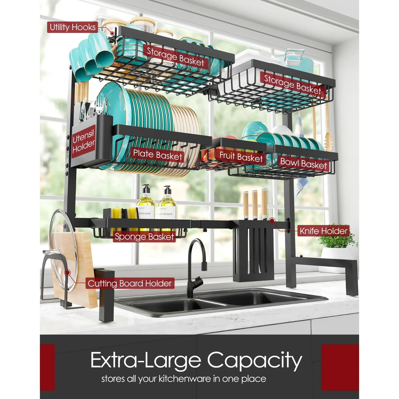 π§Ό Over The Sink Dish Drying Rack XXL (Expandable) Why This Rack Designed to maximize space and keep your kitchen clean and organized π€ This over-the-sink drying rack uses vertical storage to free up your countertop while letting water drain directly into the sink. Adjustable width and durable stainless steel make it a long-term, everyday kitchen upgrade. Perks β’ π½οΈ Large capacity for plates, bowls, cups, and cookware β’ πͺ Dedicated holders for knives, cutting boards, utensils β’ π· Wine glass rack and utility hooks included β’ π Adjustable width from 31.5" to 39.5" β’ π§ Direct over-the-sink drainage keeps counters dry β’ π§² Premium 304 stainless steel - rust & corrosion resistant β’ π§Ό Easy to clean black waterproof coating Design & Fit β’ Fits most household sinks β’ Sink width: under 33.9" β’ Faucet height: under 21" β’ Stable 3-tier structure with 11 functional accessories Whatβs Included β’ Dish rack frame β’ Utensil holder β’ Knife holder β’ Cutting board holder β’ Cup & wine glass holders β’ Utility hooks and accessories (11 total) Perfect For β’ Small kitchens and apartments β’ Space-saving organization β’ Clean, clutter-free countertops π Fast Shipping & Secure Packaging Ready to organize your kitchen right out of the box. Condition π Brand new β unused β clean β fully functional β ready to install β