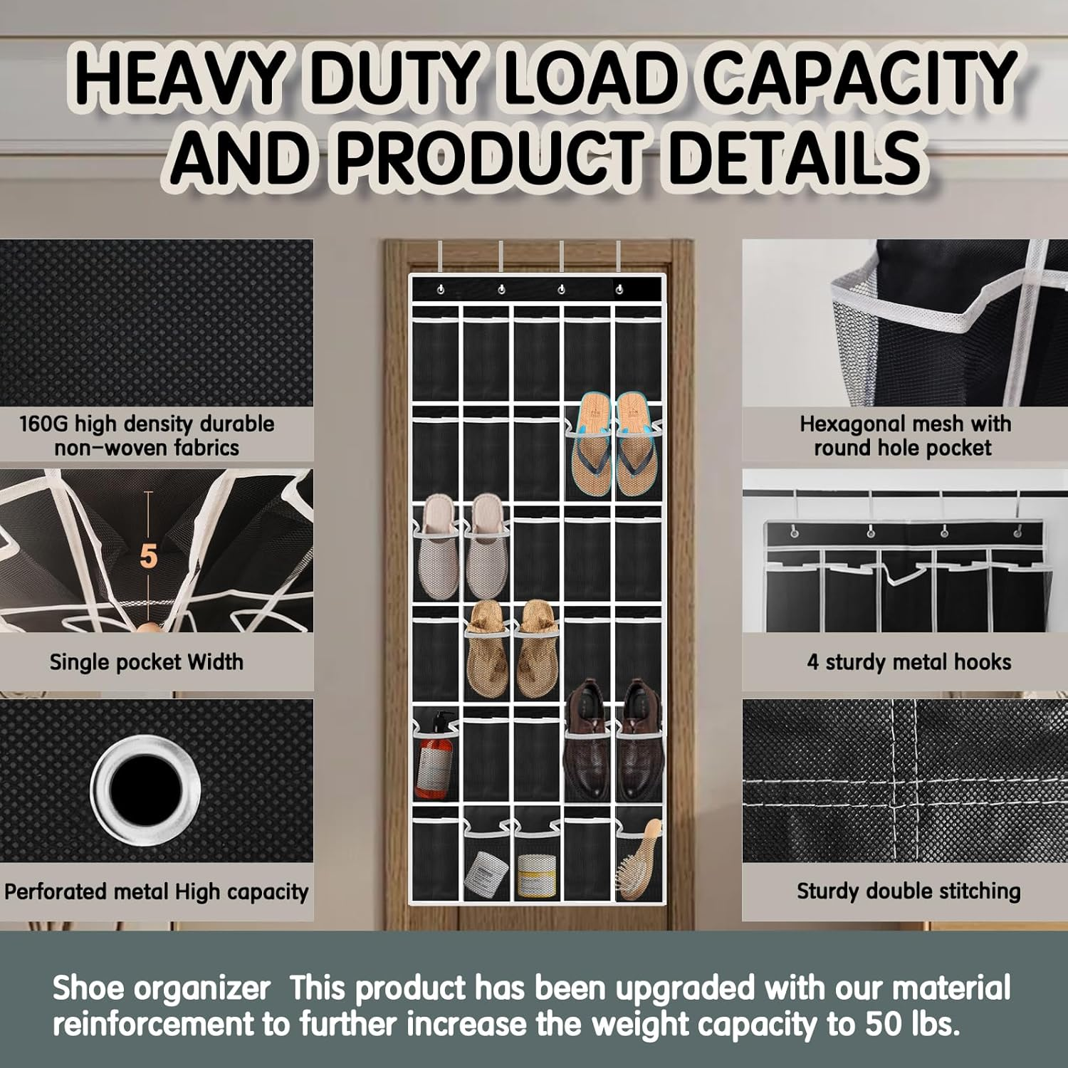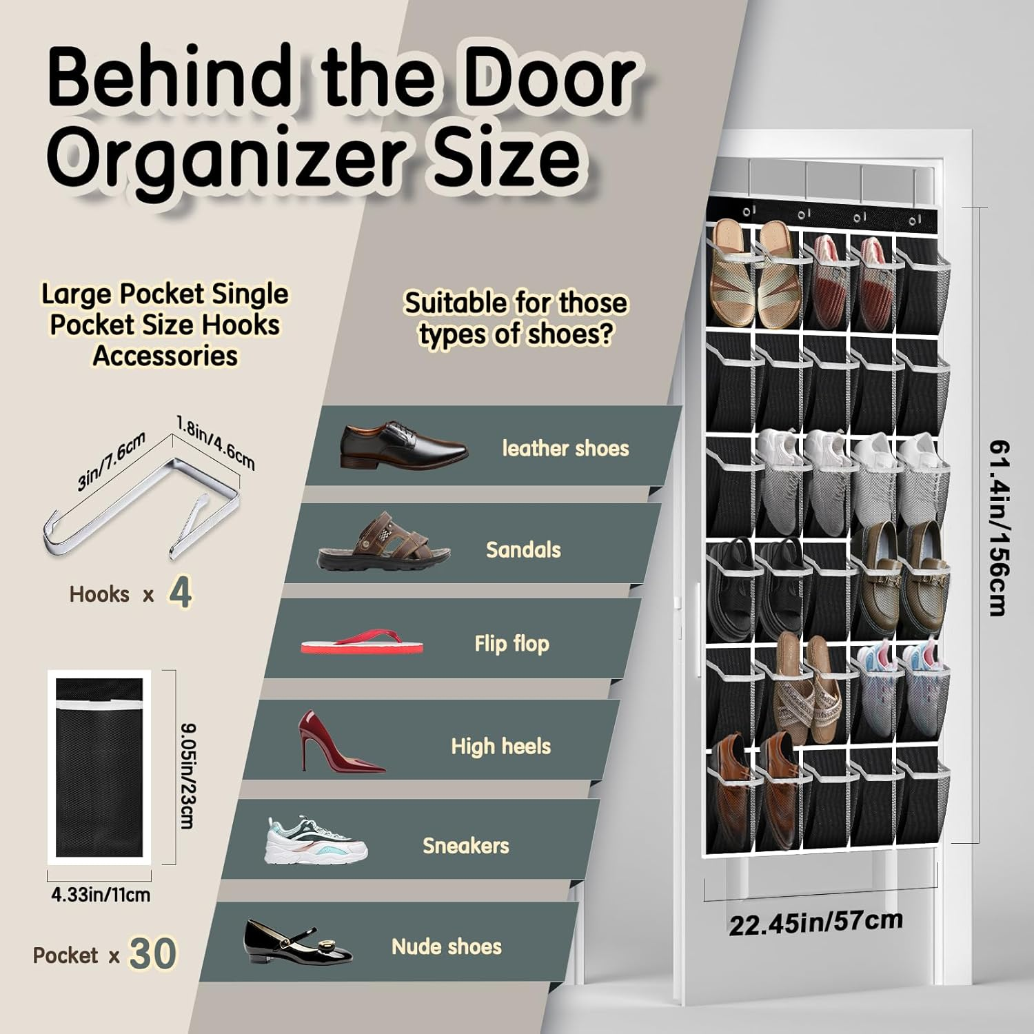 Store New Arrivals Add to Favorite View Feedback Contact Over the Door Shoe Organizer with 30 Breathable Mesh Pockets - Large Capacity Closet Storage for Men & Women, Hanging Shoe Rack Organizer (Black-C) Description Item model number XZGD-300925 Number of Items 1 Country of Origin China Batteries Included? No Number of Compartments 30 Unit Count 30.0 Count Batteries Required? No Finish Unfinished Product Dimensions 0.2"D x 24.5"W x 61.5"H Material Non-woven Fabric Mounting Type Door Mount Item Weight 0.4 Kilograms Finish Type Unfinished Specific Uses For Product Shoes Item Package Quantity 1 Item Weight 14 ounces Special Features Portable, Compact Special Feature Portable, Compact Part Number 30-7B1A-2PN4 Color Black-C Shape Rectangular Included Components 4 hooks š„æćBREATHABLE SHOE ORGANIZER AND DURABLEć: The door hanging shoe organizer is made of high quality thickened breathable non-woven fabric, which is more sturdy in contrast to those other shoe organizers made of cheap mesh fabric and plastic. It also comes with 4 sturdy and durable hooks and 30 large mesh pockets, designed to prolong the use of the product. Pockets fold down to a very small size for easy traveling. Our closet shoe rack can hold up to 50 pounds. So you can use it with confidence. š”ć30 COMPARTMENT DOOR SHOE RACK SIZEć: This is compared with other 24 compartment and 28 compartment door hanging shoe organizer, the whole hanging shoe rack measures 59.05"(L) x 24.33."(W), 35 pockets, each pocket measures 9.05 "H X 4.33 "W X 6.7 "D. It's breathable and dries quickly. No need to worry about odor and mold. Enough space and deepened pockets, each pocket can hold 1 pair of slippers, children's shoes, flats or sandals or 1 pair of men's size 13 shoes. šćMULTI-FUNCTIONAL HANGING ORGANIZER-ć: hanging shoe organizer for closet can free up floor/shelf space. Not just for organizing shoes, this over-the-door shoe rack can also be used to organize socks, ties, scarves, and even toys, snacks, kitchen supplies, toiletries and cleaning supplies. The shoe organizer can help you save space in addition to keeping our home clean and tidy. Say goodbye to clutter this time, it's simply a great home organizer. š„¾ćUSE IN MULTIPLE SCENARIOS ACCORDING TO YOUR LOCATIONć: This hanging shoe bag can be used not only in these places kitchen, baby room, bathroom, closet, foyer, bedroom, but also in pantry door, hall closet door, locker door, bi-fold door in your home, campsite, cruise ship, college dorms, classroom, traveling. Shoe rack includes 4 non-slip durable hooks, adjustable to fit doors 1.35"-1.75" thick, fits most doors perfectly. š ćPROVIDING YOU WITH BETTER SERVICEć: If you have any product related questions about the use of the closet door organizer or after purchasing it, you can contact us at any time, we will solve your problem within 24 hours after we receive your message. We promise to make our customers 100% satisfied. There is no need to have too many concerns and can worry about, like to buy it today! Product Description ABOUT US We offer the best prices around on high quality products. Our E-store includes media such as books, movies, music and games while offering electronics, toys, sporting apparel, clothing, tools, general home, garden items and more. SHIPPING We are always working hard to ensure your package arrives as soon as possible. Please understand that some factors like weather, high postal traffic, and the performance of shipping companies are outside of our control. We offer free shipping to the lower 48 states and ship within 2 business days of payment, usually sooner. We do not accept P.O. Boxes. Please provide a physical address. For shipping outside of the continental USA, we only use eBay's Global Shipping Program.The item is shipped to KY and then sent to the rest of the world. International customers are responsible for all duties and taxes. Continue to check out in order to calculate costs for shipping the item to your country. Messages regarding eBay's Global Shipping Program MUST be directed at eBay EXCLUSIVELY. RETURNS We offer a 30-Day Return Policy on items which you are not completely satisfied with. You have the option for a full-refund or an exchange of the item. No returns are available on items shipped outside of the USA. PAYMENT We accept PayPal. CONTACT US This page content is yet to come Please ad us to your favorite seller and visit again later Thank You CUSTOMER SATISFACTION We try our very best to make sure every customer is completely satisfied. If there's a problem, message us! We're happy to help. WE ACCEPT Copyright Ā© 2021 AutoDS. | All Rights Reserved