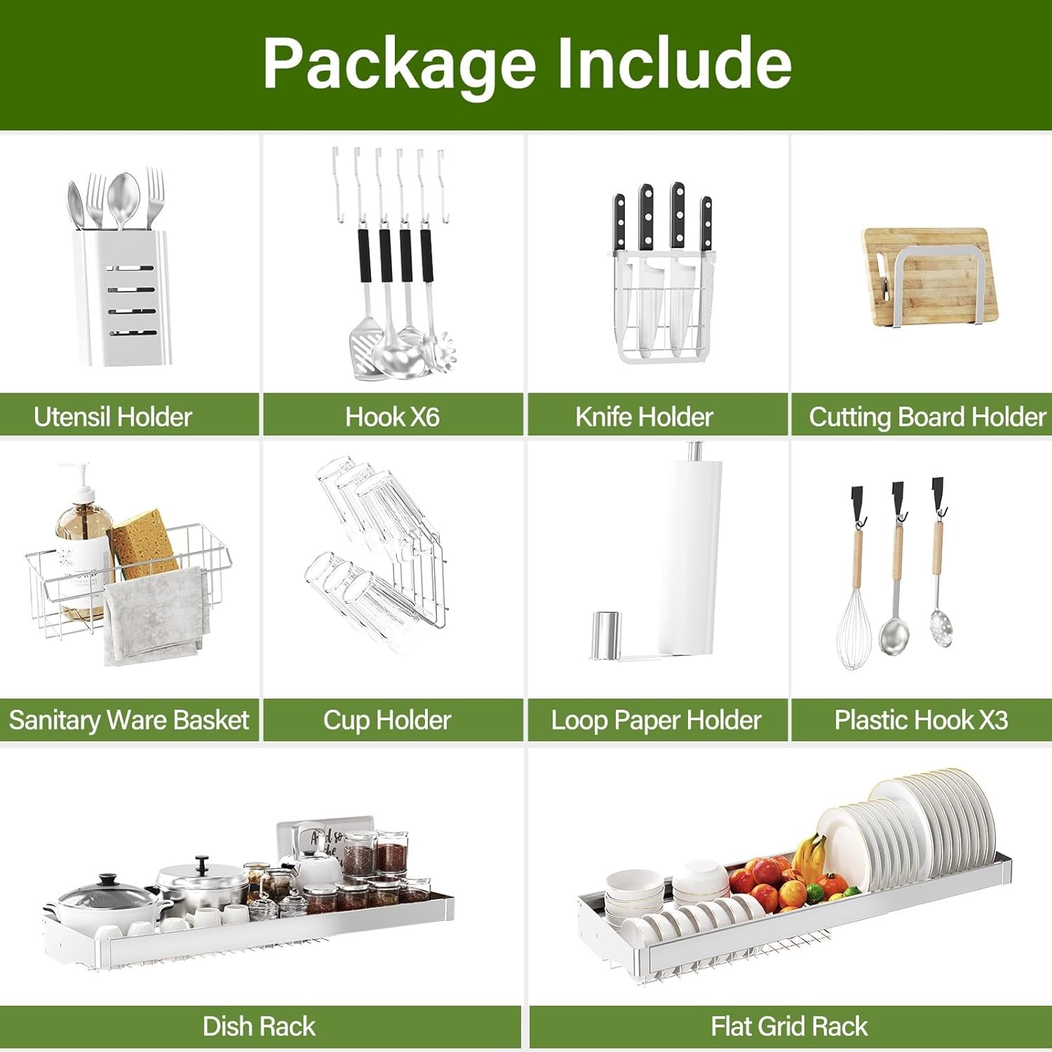 Store New Arrivals Add to Favorite View Feedback Contact Over the Sink Dish Drainer Drying Rack 3 Tier, Full Stainless Steel Dish Drying Rack Adjustable Length 20.9''-37.4'', Kitchen Sink Shelf, Organized Space-Saving Dish Rack Description Item model number LSJ Item Weight 6.19 Kilograms Mounting Type Over-the-Sink Color Silver Product Dimensions 11.7"D x 37.4"W x 31.8"H Material Stainless Steel Assembly Instructions Description Included Recommended Uses For Product Storage,Dish Drainer,Kitchen,Utensil Holder Dish Drying Rack Location Over the Sink Special Feature Dust Resistant Weight Limit 200 Pounds Size 3 Tier with Flat Grid Full Core Stainless Steel Dish Dry Rack: This over the sink dish drainer drying rack is made of advanced stainless steel material, including the main shelf and all accessories - Stylish, Sturdy, Smooth, Corrosion Resistant, and Rust-Resistant which made to last and easy to clean. Heavy-duty metal shelf can hold up to 200lbs, stable and not leaning forward. Anti-slip suction cup at the bottom for reinforcement stability. Adjustable Length Fit Most Sink:This dish drying rack features an adjustable frame to perfectly fit a wide range of sink sizes and layouts—ideal for both single and double basin sinks, the Min width is 20.9” and Max width is 37.4", you can freely adjust length according to your needs. Large capacity can helping you maximize vertical space. Space-Saving For Kitchen : With a tthree-tier design efficiently utilizes space, freeing up 80% of your countertop to create a tidy and clean kitchen. This dish drying rack above the sink boasts ample large capacity to accommodate various cooking utensils, such as oversized plates, bowls, basins. All the accessories are complete, including knife holder, storage basket, cutlery holder, cutting board rack, cup hanging, hook up, paper holder. (All accessories are made of stainless steel). Please carefully measure 3 values before choose our dish rack over sink: the width of the kitchen sink should be≤ 37in , the height of the faucet should be ≤ 17in, the height between the cabinet bottom to the countertop ≥39in. It is a important step to help you get a suitable dish rack. Easy Installation :Equipped with all needed tools and instructions, you can easily assemble it with only the user manual. Contact us anytime for assistance; we're here to provide prompt support and ensure your satisfaction throughout your shopping experience. Instant Video Support: Step-by-step installation video is available on this product page (go to Videos section) for quick setup. Enjoy 24/7 visual guidance! Product description Dish Drying Rack Over Sink Save Space for Your Kitchen Countertop Rust-Resistant & Built to Last Durable stainless steel construction that stays strong, resists rust, and keeps your dishes safe and dry — day after day. Sturdy & Durable High Load Bearing Up to 200lbs Expandable Over the Sink Dish Drying Rack for Kitchen Countertop Work Over The Sink Placed it over the kitchen sink, the dish drying rack with other holders holds goods such as mugs, dishes, bowls, utensils, chopping board, knife, and detergent, etc. Hooks are allowed Hanging cooking ware on the rack. Keep your sink and countertop neat and create tons of extra useful space. Water flows directly into the sink, keeping your countertop clean and dry with zero effort. All-in-One Dish Drying Rack 1 Automatic Drainage Design 2 See Clearly Move Freely 3 3-Tier for Space-Saving Rock-Solid Stability Heavy-duty L-brackets + anti-slip suction cups grip tiles/smooth surfaces—no drilling, no wobbling, even when fully loaded! Thickened steel tubes Our dish rack feature thicker tubing for unmatched strength. Holds heavy pots, pans, and cutting boards, perfect for busy kitchens. Easy-care surface Smudge-proof stainless steel resists stains, grease, and water spots. Just wipe with a damp cloth—, no streaks—keeping its sleek look for years. Full Stainless Steel Every bracket, and tray is rust-resistant—no weak plastic parts to crack or discolor. Built for lifelong kitchen battles! Say goodbye to cluttered countertops and hello to a more organized kitchen Our Stainless Steel over the sink dish drying rack boasts expansive capacity, effortlessly accommodating all your kitchen essentials. ABOUT US We offer the best prices around on high quality products. Our E-store includes media such as books, movies, music and games while offering electronics, toys, sporting apparel, clothing, tools, general home, garden items and more. SHIPPING We are always working hard to ensure your package arrives as soon as possible. Please understand that some factors like weather, high postal traffic, and the performance of shipping companies are outside of our control. We offer free shipping to the lower 48 states and ship within 2 business days of payment, usually sooner. We do not accept P.O. Boxes. Please provide a physical address. For shipping outside of the continental USA, we only use eBay's Global Shipping Program.The item is shipped to KY and then sent to the rest of the world. International customers are responsible for all duties and taxes. Continue to check out in order to calculate costs for shipping the item to your country. Messages regarding eBay's Global Shipping Program MUST be directed at eBay EXCLUSIVELY. RETURNS We offer a 30-Day Return Policy on items which you are not completely satisfied with. You have the option for a full-refund or an exchange of the item. No returns are available on items shipped outside of the USA. PAYMENT We accept PayPal. CONTACT US This page content is yet to come Please ad us to your favorite seller and visit again later Thank You CUSTOMER SATISFACTION We try our very best to make sure every customer is completely satisfied. If there's a problem, message us! We're happy to help. WE ACCEPT Copyright © 2021 AutoDS. | All Rights Reserved