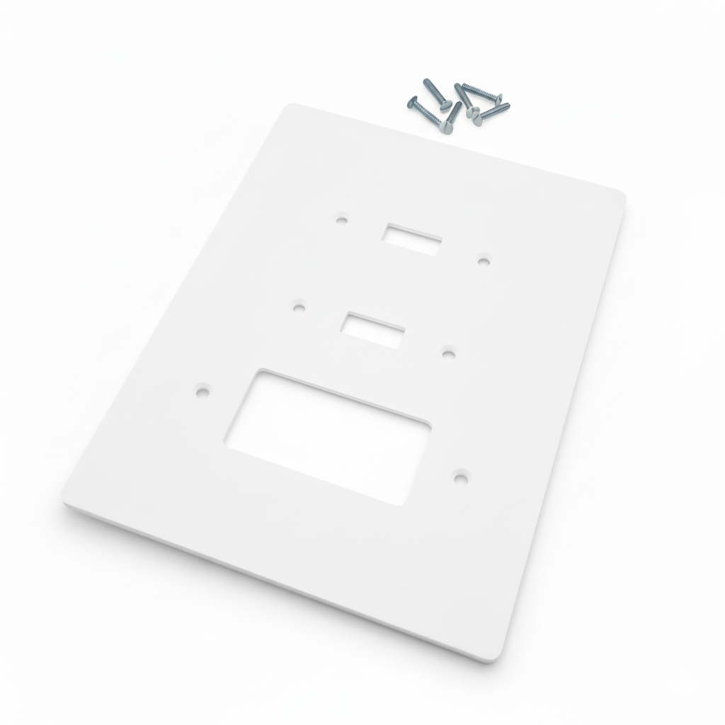 Extra Large Electrical Cover White 6 inch x 8 inch Made of plastic Textured Surface Made in USA Screws are included 🧱 Large Oversized Electric Combo Wall Plate – Perfect for Renovation & Repair Need to cover paint lines, cracks, or oversized wall openings? Our Large 6" x 8" Electric Wall Plates are the perfect solution for clean, professional-looking results during renovations or repairs. Unlike standard wall plates, these oversized outlet and switch covers provide extra coverage —ideal for: Hiding paint lines or color changes left by old switch plates Covering cracked drywall or uneven wall openings Fixing loose electrical box cutouts that are too large Giving your walls a fresh, finished look without extra patching or painting Product Highlights: 📏 Extra-Large Size: 6" x 6" for maximum coverage 🧰 Renovation-Friendly: Instantly hides imperfections 💪 Durable Material: Made from high-quality, impact-resistant plastic 🎨 Clean Modern Look: Available in popular finishes to match any décor ⚡ Easy Installation: Fits standard switches and outlets Whether you’re remodeling a home, updating old wiring, or flipping a house, these oversized wall plates make your project faster, cleaner, and more professional.
