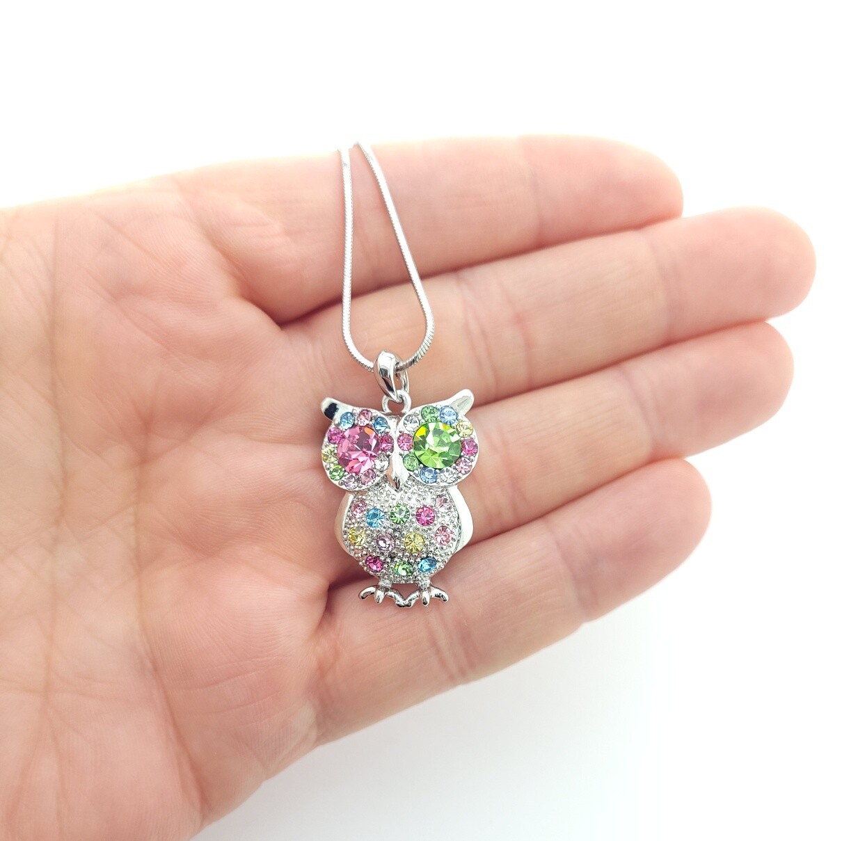 Owl Multi Color Made With Swarovski Crystal Wisdom Smart Gift 18" Chain Pendant Dimension: 1.2" (34 mm) x 0.8" (20 mm) With silver plated 18 inch / 46 cm chain lobster clasp Condition: A brand-new, unused, and unworn item Jewelry box included, ready for gift giving! Perfect Birthday, Christmas, Valentines day and anniversary gift for your loved ones, or a gift for yourself!. Please drop us a message if you have any inquiry. We will try our best to help you out! Positive feedback is greatly appreciated. If you are unhappy for any reason please do not leave negative or neutral feedback and allow us the opportunity resolve all issues. We are very fair and easy to deal with. The crystals of this finished product are being manufactured by D. Swarovski & Co. “Swarovski” is registered trademark of Swarovski AG, but there is no relationship between any Swarovski company and the manufacturer of this product. PAYMENT Payment should be made within seven days since the winning of the first item. RETURNS If you are not 100% happy with the item you received, you can return it in original packaging and condition within 30 days of receiving your package.
