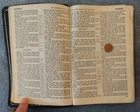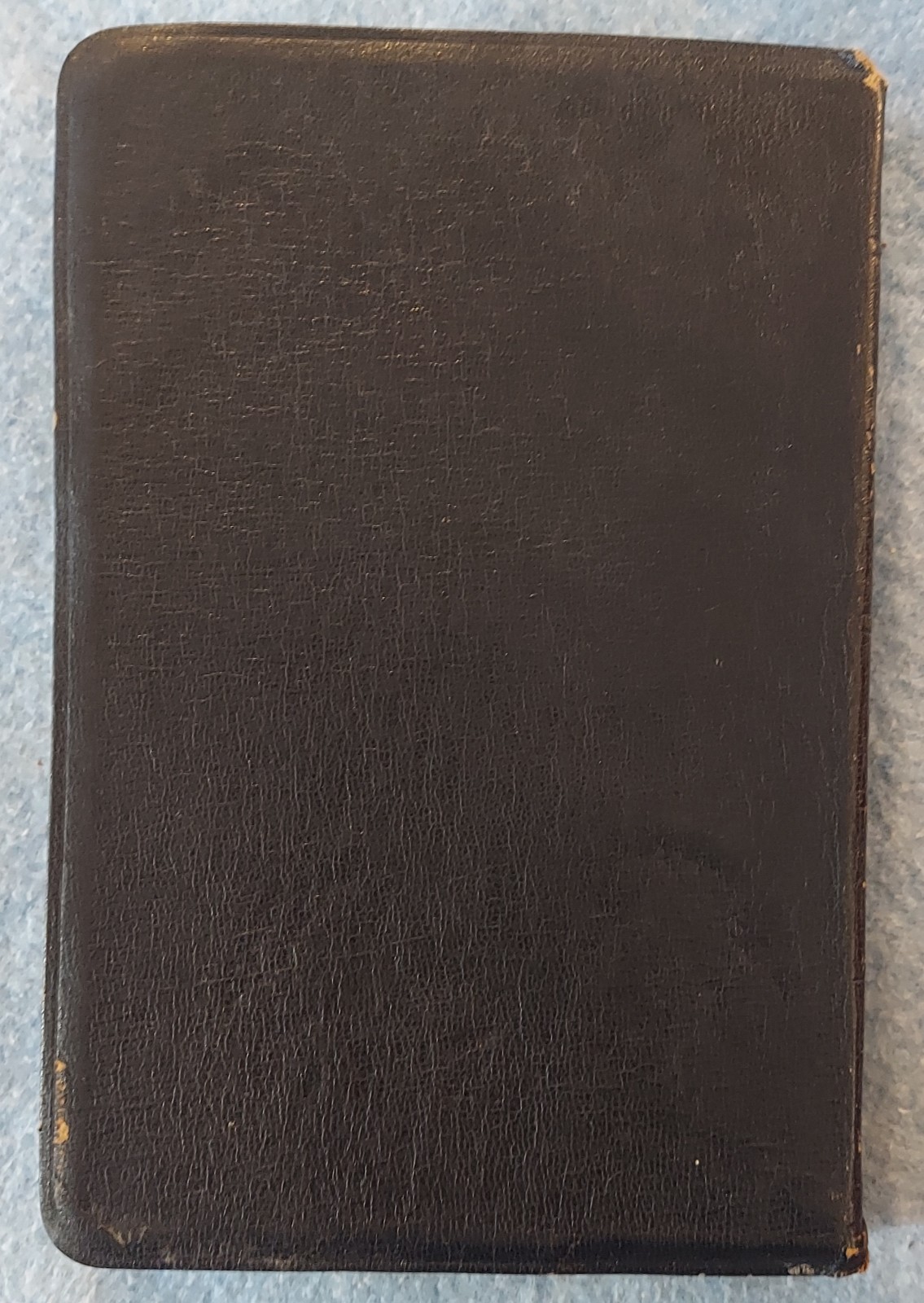 Oxford Morocco Leather King James Holy Bible KJV References Concordance Maps THE OXFORD SELF-PRONOUNCING BIBLE THE HOLY BIBLE CONTAINING THE OLD AND NEW TESTAMENTS TRANSLATED OUT OF THE ORIGINAL TONGUES AND WITH THE FORMER TRANSLATIONS DILIGENTLY COMPARED AND REVISED BY HIS MAJESTY’S SPECIAL COMMAND Appointed to be read in Churches AUTHORIZED KING JAMES VERSION With Chain References CUM PRIVILEGIO OXFORD: PRINTED AT THE UNIVERSITY PRESS Long Primer 8vo Refs. India Paper Printed in Great Britain at the University Press, Oxford Oxford model code on a back page: 271M No. 02500x Cover: NATURAL MOROCCO - NYLON SEWN, black OXFORD FLEXIBLE BINDING Size: 6 x 9 x 1 ¼ inches Pages: Old & New Testaments, 1264; Dictionary of Scripture Proper Names, Subject-Index, Concordance, 246; Index to Maps, 5; The New Oxford Bible Maps, 16 See the photo with the coin to judge the size of the print. Features Center-column references and Footnotes (cross-references, translation notes) Topical page headings Study Helps Dictionary of Scripture Proper Names Subject-Index Concordance Index to Bible Maps The New Oxford Bible Maps Gold finish on the page edges This Bible is in good condition. There are two church stamps inside the first page. The presentation page is filled out with names and date (1972), also the family information pages. The title page is a bit torn. Marks are observed on 24 pages (mainly neat underlining) and some notes on a couple otherwise blank pages near the back of the Bible. There is a light stain at the edge of a number of pages near the back of the Bible. Please see the photos. There are a number of bumped/bent page corners. There are several pages with a crease at the corners. The cover has a bit of general shelf/edge wear with more noticeable wear on the spine, especially at the top where there are some gaps/voids. Again, please see the photos. The gold finish on the page edges is a bit worn and scuffed.