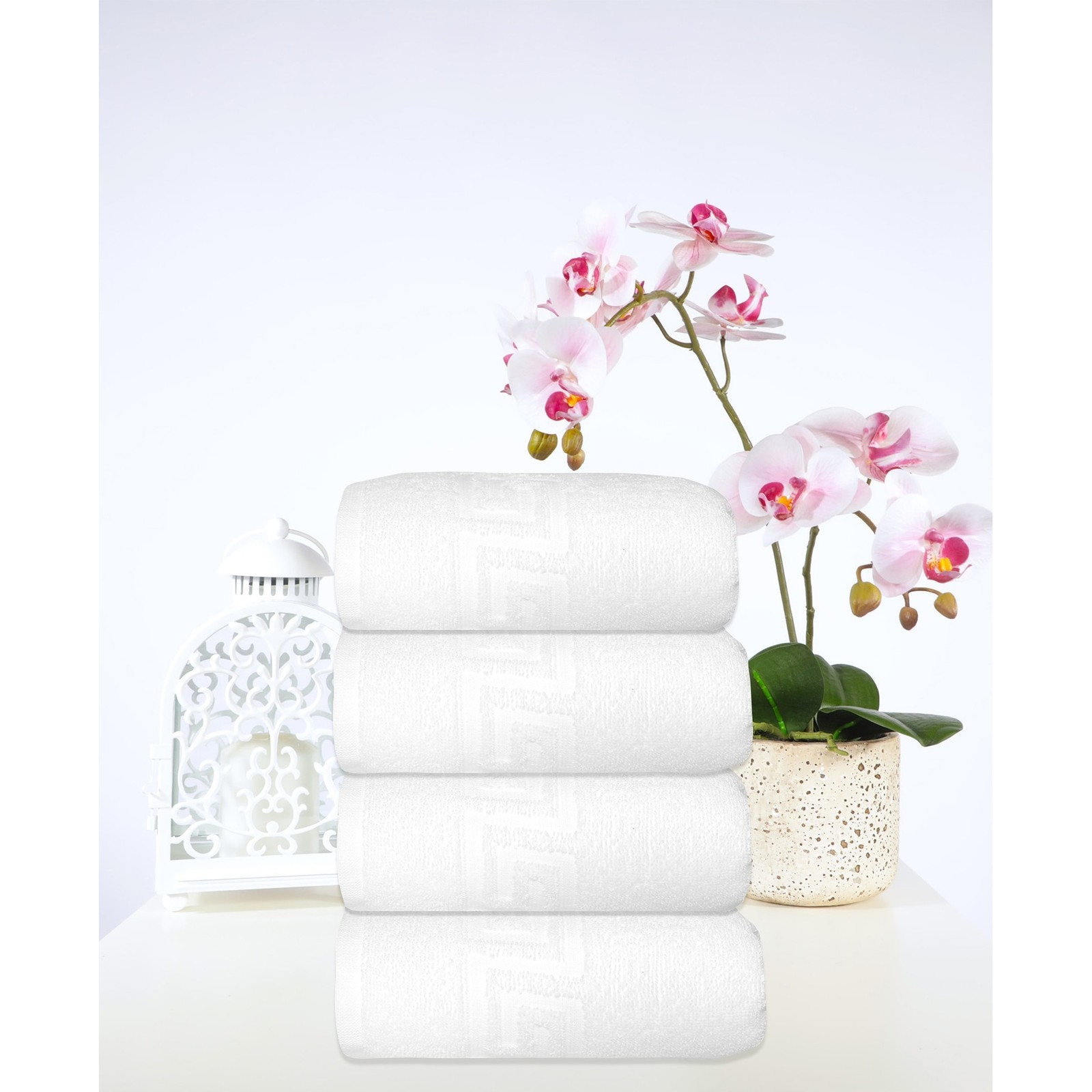 Milos Greek Key Design collection is made of finest quality 100% Turkish Cotton for supreme absorbency, durability and softness of touch. Greek Key Design is adding stylish touch to your bathroom. Milos Greek Key Towel collection is produced in state-of-the-art vertically integrated green Factory. Weight : 500 GSM, available in two sophisticated colors White and Navy. Free Shipping Over $49.99* Details Ozan Premium Home Milos Collection Hand Towels, Set of 4 - 16-30 inch Product Description: Milos Greek Key Design collection is made of finest quality 100% Turkish Cotton for supreme absorbency, durability and softness of touch. Greek Key Design is adding stylish touch to your bathroom. Milos Greek Key Towel collection is produced in state-of-the-art vertically integrated green Factory. Weight 500 GSM, available in two sophisticated colors White and Navy.