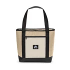 Keep your food and beverages cool with this soft-sided, 14.8 quart with 24 can capacity, Tote Cooler. This tote cooler keeps ice for up to 12 hours. The tote cooler is made with premium polyester outer fabric with nylon zipper closures. The perfect bag for the grocery store, camping and other outdoor adventures, sport events and tailgating. This tote cooler features an insulated main compartment with an easy-to-use top zipper and a front zippered pocket perfect for small snacks, your phone, sunscreen and keys. The leakproof interior has an easy clean PEVA lining with foam insulation. The dual-padded handle straps make this a comfortable to carry accessory for your next adventure. When not in use, this tote packs down flat for easy storage. Fits 24 cans 14.8 quart capacity Ice retention up to 12 hours Polyester outer shell fabric Nylon zipper closures Padded shoulder straps for comfortable carry Leakproof interior with easy clean PEVA lining Front accessory pocket Packs down flat for easy storage Product dimensions: 13.1” x 5.5” x 13.9” Available colors: Pink, Tan