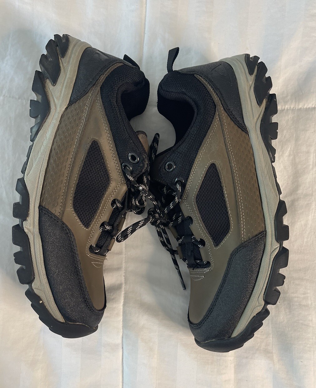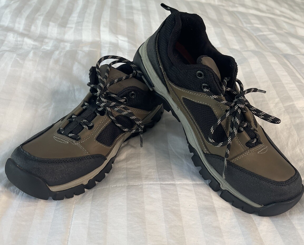 Ozark Trail Men's Stone Low Taupe Leather Hiking Boot Shoes Lightweight 9 1/2 Preowned and good condition. Worn once. These have been washed. Some dirt on the bottom of shoes but treads are in great condition. Please review all pictures as this is the item you will receive. Please message me with any questions. Thank you BSC