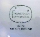 PAIR OF TERRIFIC VINTAGE FRANCISCAN EARTHENWARE APPLE PATTERN DINNER PLATE-USA This listing is for a pair of vintage Franciscan Earthenware dinner plates. They are in the pattern “Apple” and measure 10 5/8” in diameter. fThere are 2 different backstamps. They are in very good condition, with just a chip of the glaze on a rim. If you have any questions, please email me. If you purchase any other items in my store, I will combine shipping, if I can. Thank you for visiting my listing.
