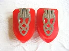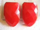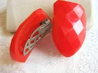 Pair or set of antique bakelite dress or scarf clips: *Wonderful chunky diamond cut or shaped facets *The perfect shade of red - so bold and bright *Clips measure about 1 5/8" long x 1" wide *Very good condition for the age all around *You will LOVE them! Don't forget to check my other items ;) PLEASE NOTE : COMBINED SHIPPING: IF THERE IS A SHIPPING CHARGE LISTED......KNOW THAT I GLADLY COMBINE SHIPPING FOR BOTH DOMESTIC AND INTERNATIONAL ORDERS. PAY ONLY ONE SHIPPING FEE - THE REST SHIP FOR FREE . ADJUSTMENTS ARE MADE ON THE LOWER SHIPPING AMOUNT(S). (IF THE CART/CHECKOUT DOESN'T AUTOMATICALLY DISCOUNT - PLEASE PROCEED AND TRUST I WILL REFUND OVERAGES PROMPTLY) FLEXIBLE FORMATS : FOR AUCTION STYLE AND BEST OFFER LISTINGS : IF YOU ARE INTERESTED IN A BUY IT NOW PRICE, SEND A MESSAGE AND I WILL ADD ONE AS LONG AS THERE AREN'T ANY BIDS YET. (PLEASE PLAN ON PAYING WITHIN 3 DAYS AS THE NON-PAYING BIDDER PROCESS IS AUTOMATIC) SHOP WITH CONFIDENCE : I AM AN EXPERIENCED SELLER WITH A PROVEN TRACK RECORD - HAPPY CUSTOMERS AND SMOOTH TRANSACTIONS ARE MY TOP PRIORITIES ALL OF MY ITEMS HAVE BEEN CAREFULLY STORED IN A SUPER CLEAN, SMOKE FREE ENVIRONMENT KNOW I ALWAYS PAD AND PACKAGE WITH EXTREME CARE - I MAKE SURE EVERY PARCEL GETS SENT OUT JUST AS I WOULD LIKE TO RECEIVE IT. I ALSO INSURE ALL PACKAGES AT NO ADDITIONAL COST TO YOU - FOR EXTRA PROTECTION ONCE IT IS OUT OF MY CARE PLEASE LEAVE FEEDBACK TO INDICATE YOUR ORDER HAS ARRIVED SAFE & SOUND AND I WILL RESPOND IN KIND RETURNS ARE NOT ACCEPTED - DUE TO THE UNIQUE NATURE OF ONE OF A KIND / VINTAGE ITEMS. I WRITE DETAILED DESCRIPTIONS AND POST GREAT PHOTOS. I AM ALWAYS AVAILABLE TO ANSWER QUESTIONS AND/OR SUPPLY MORE PHOTOS IF ASKED THANKS FOR UNDERSTANDING AND HAVE A GREAT DAY! INTERNATIONAL BUYERS , PLEASE READ: I reserve the right to cancel a transaction and refund your funds in full if shipments to your destination are not insurable and/or trackable. The shipping price I charge just covers the fees to ship your package out on my end. You most likely will have additional charges, customs fees, duties, taxes, etc from the delivery office in your region. It is your responsibility to check on these costs beforehand if it is of concern to you. I have no knowledge, control of, nor responsibility for paying those at all. Be advised that you may experience delivery/customs delays, package searches, or misc red tape issues that are entirely out of my jurisdiction. I pay additional insurance and fees on the postage funds I receive that will not be reflected/listed on your shipping tags. I ship via international priority mail to protect us both - please don't ask for a less expensive rate, as I won't ship any other way. I will not falsify, under value, or list contents as a gift on customs forms as that is both illegal and interferes with the proper insurance amount. What I can and will do is include any other purchases made at the same time with no additional added shipping cost to you - just pay a single fee and the rest ship for free . Makes it all seem a bit better if you can find a few things that make you smile and just have pay one flat rate to get them from me to you :) NO WORRIES - SMILE AND SHOP AWAY!