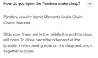 PANDORA 925 ALE 8 1/8" Snake Chain - No Crown (Pre-2008). Condition is Pre-owned and in very good condition. This was made prior to 2008 and will not have the crown above the O (see photo). I have included a photo with the instructions for opening the clasp on the snake bracelets (see photo). When buying a snake bracelet, keep in mind how many charms you plan on having on the chain. The more the charms, the bigger the bracelet you will need as the size of the charms will hold the chain further from your wrist. (For example -I have an almost fully loaded 8" Chain that fits my 6.75" wrist.) Please see all photos for item details and condition. Shipping USPS.