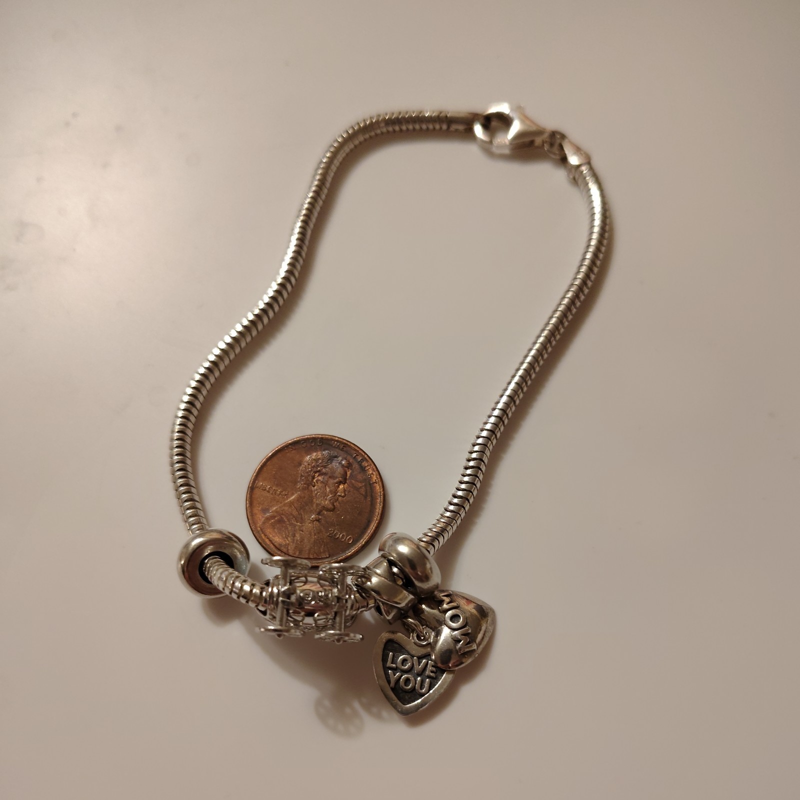 Crafted with precision, this PANDORA charm bracelet is a sterling example of elegance and personalization. The bracelet, stamped with a 925 mark, denotes its purity and fine craftsmanship. Accompanied by four charms, each with its own R.L 925 Italy stamp, the ensemble promises to be a timeless addition to your jewelry collection. With an item length of 8 inches, the bracelet offers a comfortable fit that complements any wrist size. The charm bracelet style allows for versatility and self-expression, making it an ideal gift or a cherished keepsake for yourself. The bracelet's authentic vintage appeal is a testament to its enduring allure.
