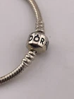 PANDORA 925 STERLING SILVER SNAKE CHAIN BRACELET W/ANNIVERSARY CHARM 7.5" 4085 LOVE ****************************** Thank you for your interest in our jewelry. We?d like to introduce ourselves. We are just a retired couple who love matching our customers with great jewelry. We?re not professional jewelers. To have the best shopping experience we like to recommend the following: Please measure your hand, wrist, finger or neck to ensure the best fit. We can use your measurements to help with sizing. Please ask all the questions you want. We know some stuff and, if we don?t, we?ll do the research. We like to learn too. More Stuff: If an item is described as ?gold over 925 sterling silver? this means it is gold vermeil. Vermeil is the process by which a layer of gold (usually 14k or 18k) is bonded to sterling silver. We only clean with gentle soap and warm water to avoid damage. The items we sell may be new or pre-owned and may have normal wear, slight damage, and/or tarnish. We make every effort to ensure the items we sell are as described. This includes testing to confirm metal purity if the item isn?t marked, and testing for gemstone identity. We try to put measurements in the jewelry description and include a photo of each piece with a U.S. quarter (25mm).