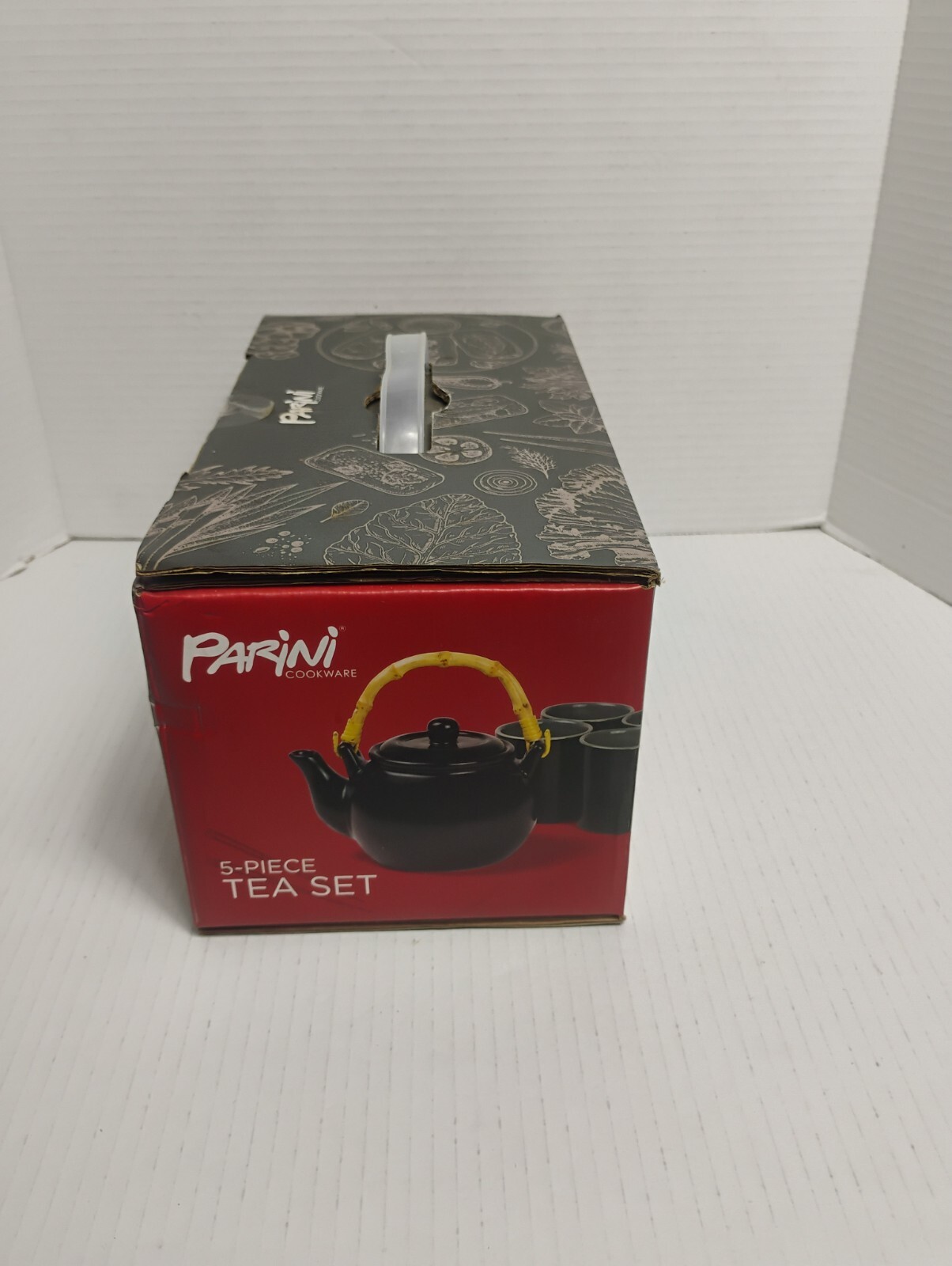 PARINI 5-Piece Black Ceramic Tea Set with Bamboo Handle Open Box