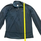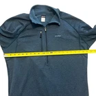 The product is a men's 2007 blue R1 Flash pullover made by Patagonia in the USA. This pullover jacket features a 1/4 zip closure and is designed with a polyester outer shell material. The size is large, making it a comfortable fit for most men. The stylish blue color adds a pop of color to any outfit, while the pullover style offers convenience and easy wear. Made in the USA, this jacket is a high-quality piece that combines functionality with a touch of style.