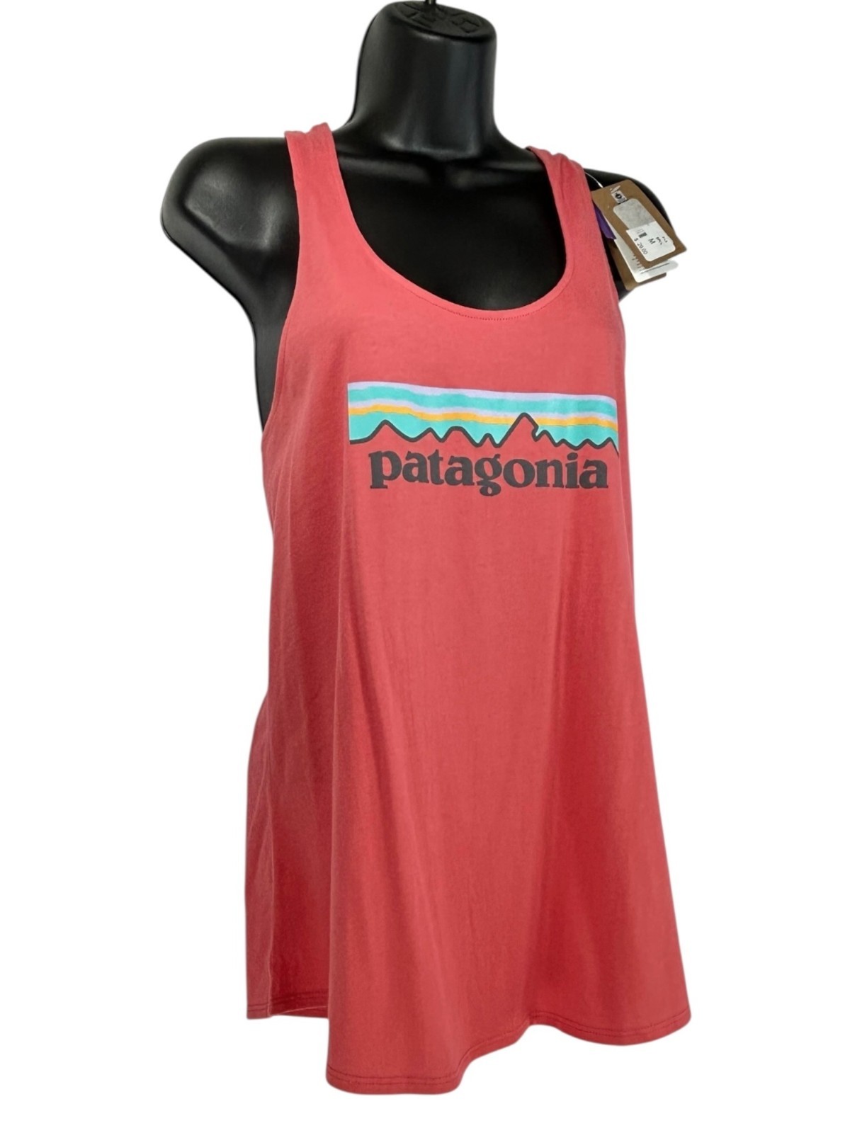 NWT Patagonia Logo Tank Top in coral orange combo • Racerback straps and sleeveless • Graphic mountain logo print on front in multiple colors • Lightweight and soft jersey fabric • Organic cotton made • Rounded tunic hemline Made with organic cotton Made in Mexico Shoulder to hem: 27.5” Pit to pit: 18” across #patagonia #patagoniatank #patagoniatanktop #patagoniawomens #patagonialogotank #cottontanktop #logotanktop #organiccottontanktop #organiccotton
