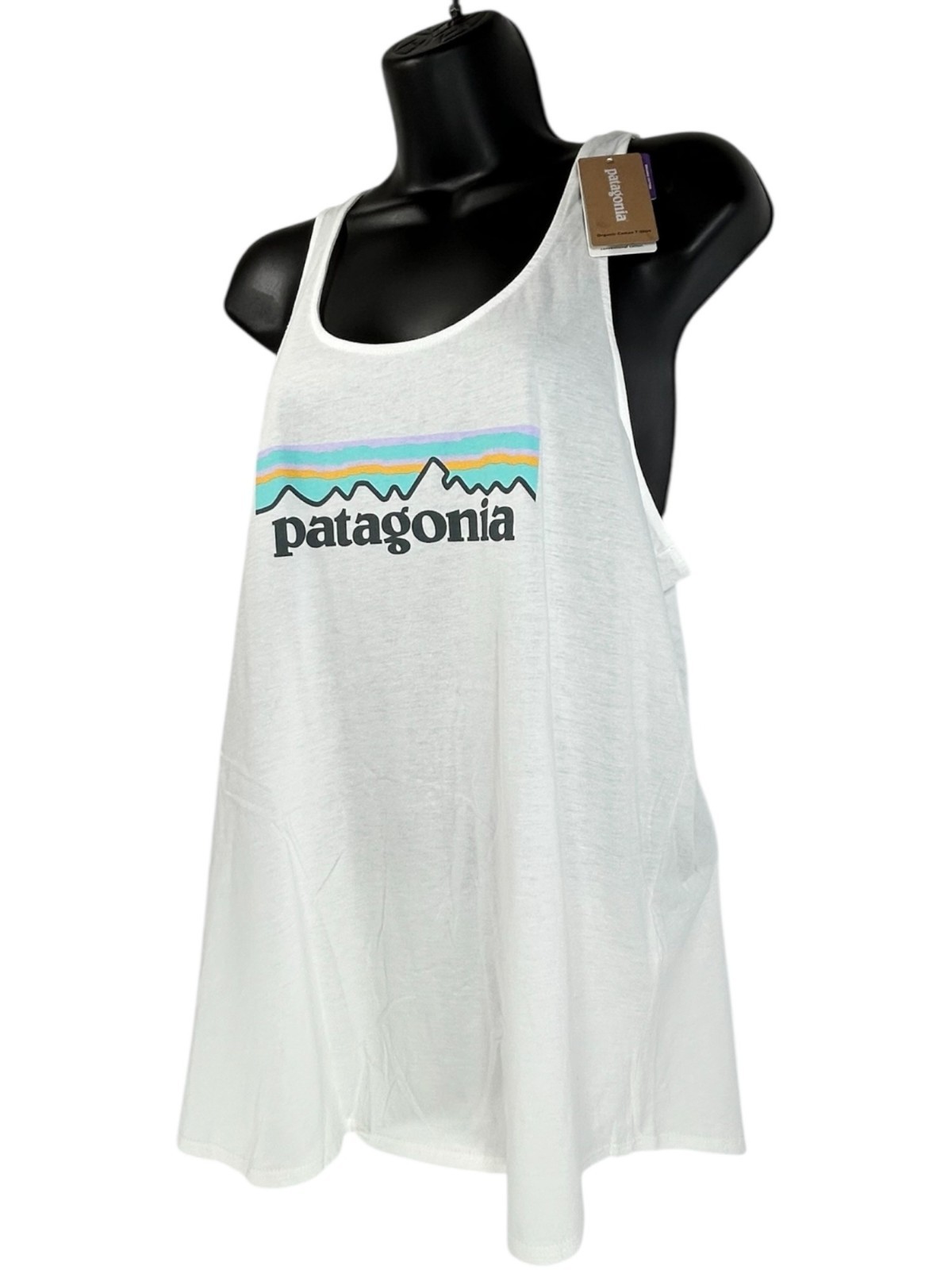 NWT Patagonia Logo Tank Top in White combo • Racerback straps and sleeveless • Graphic mountain logo print on front in multiple colors • Lightweight and soft jersey fabric • Organic cotton made • Rounded tunic hemline Made with organic cotton Made in Mexico Shoulder to hem: 27.5” Pit to pit: 18” across #patagonia #patagoniatank #patagoniatanktop #patagoniawomens #patagonialogotank #cottontanktop #logotanktop #organiccottontanktop #organiccotton