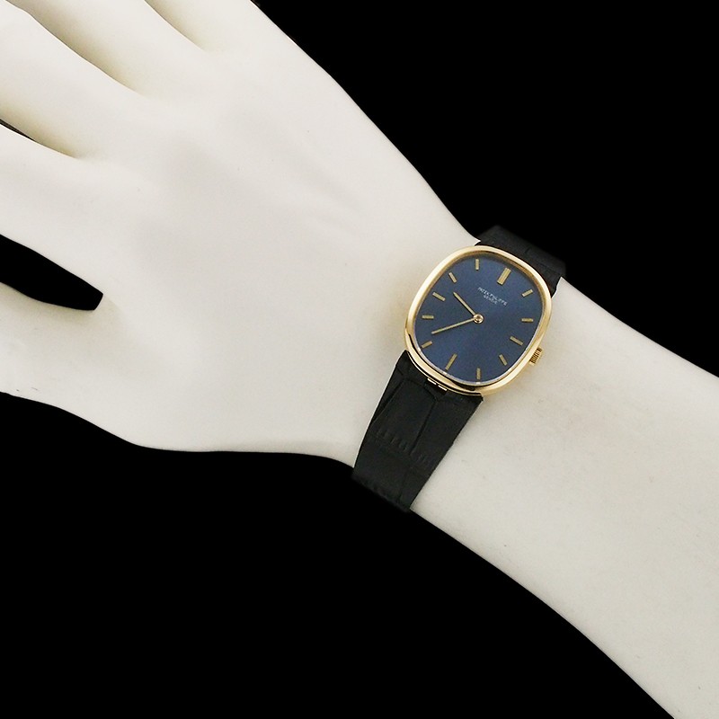Description Brand: Patek Philippe Product name: Golden Ellipse Model number: 3548J Year of manufacture: - Dial: Blue Material: K18YG (750 engraved on buckle) Size: Case: 32mm x 27mm (excluding crown) Thickness: 5mm Wrist circumference: Min. 15cm, Max. 18.5cm Max. belt width: 1.9cm Weight: 35g (including belt) Band: Black leather (New embossed calfskin belt (made in Japan) / genuine buckle) Drive: Manual winding Reference price: - Accessories: Our original box Rank: AQ Condition/Notes: Case: Scratches Dial: Paint peeling Finished If the product contains any prohibited materials, they will be removed before shipping. The belt size is the size of the total arm circumference including the casepart Please note If there is a notation for dimensions, please note that some errors are dueto amateur measurement. I think that the picture is different depending on the screen of thecomputer. Please do not return because the color is not the same as the one in theimage. For customers living in the USA You must pay sales tax when ordering. You have to pay the customs duty when you receive the package. International Buyers - Please Note Import duties, taxes, and charges are not included in the item price orshipping cost. These charges are the buyer's responsibility. Please check with your country's customs office to determine what theseadditional costs will be prior to bidding or buying. Customs fees are normally charged by the shipping company or collected whenyou pick the item up. These fees are not additional shipping charges. We won't under-value merchandise or mark the item as a gift on customsforms. Doing that is against U.S. and international laws.