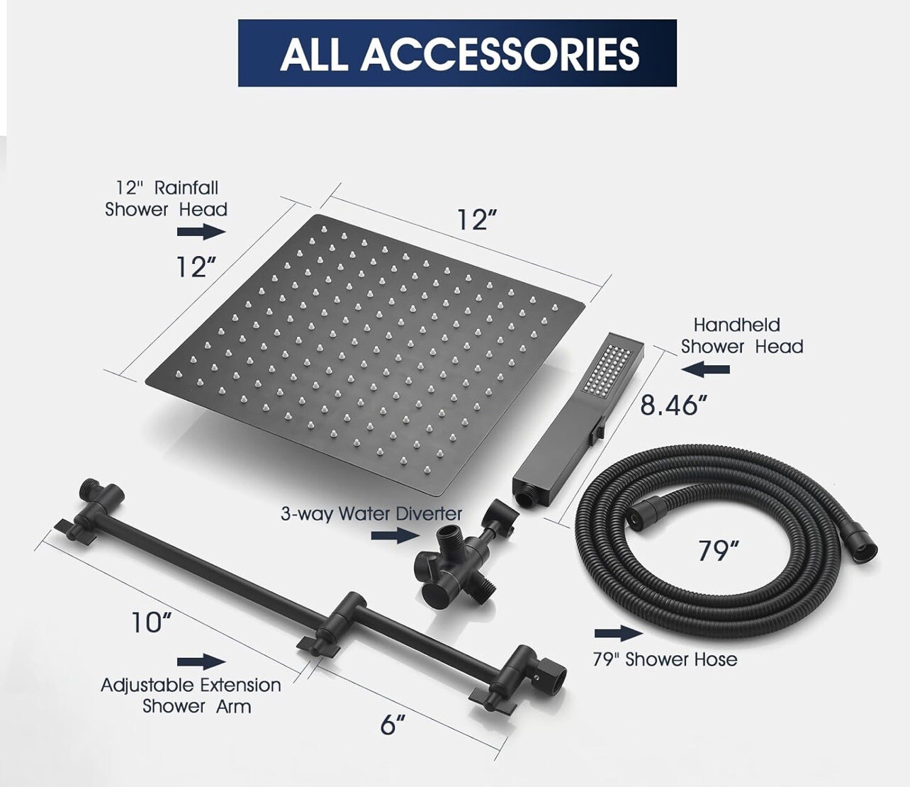 Elevate your shower experience with the PDPBath All Metal Shower Head with Handheld functionality. Designed to provide both rainfall and a powerful jet spray, this 12-inch shower head in sleek matte black offers a modern and luxurious addition to any bathroom. The sturdy stainless steel construction ensures durability, while the double function shower head, complete with a hose and instruction manual, caters to your varying needs. With a square shape and adjustable angle features, this product simplifies your daily routine. The set includes two shower heads, making it suitable for a three-faucet hole installation. The PDPBath brand is committed to quality, delivering a product that is not only stylish but also designed for practical use in your home. Model number F00720** reflects the attention to detail and design excellence.
