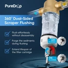 Effective Filtration Performance: PDR-50WSP guarantees effective filtration with its 50-micron mesh size and serves as a whole house spin-down sediment water filter, an ideal first-line defense in any home water filtration system. Protecting your plumbing from sediment, rust, dirt, sand, and large particles, it ensures clean water throughout. Reusable & Extended Lifespan: With its flushable and reusable capabilities, the PDR-50WSP effectively reduces the workload on subsequent finer filters. The spin down sediment filter featuring a built-in housing scraper for double-sided scraping, enhances the cleaning of particles attached on the surface of the mesh filter. Reducing product aging caused by frequent disassembly, thereby extending the service life of spin down filters. Easy Installation: The filter housing of the PDR-50WSP comes equipped with a pre-installed cartridge, along with 1" MNPT and 3/4" FNPT fittings, accommodating various pipe sizes in your house, simplifying the DIY installation process. Enjoy the ease and convenience of setting up your water filtration system without the hassle of installing the cartridge separately. Premium Durable Materials: Crafted with stainless steel mesh, a lead-free brass machine head and BPA-free water filter housing, the PDR-50WSP sediment water filter ensures water safety. The transparent housing allows easy monitoring of filter’s status. High Flow Performance: Experience a maximum flow rate of up to 750 gallons per hour, the PDR-50WSP sediment filters for well water guaranteeing swift and efficient water filtration. Enjoy a seamless flow of quality water without compromising on speed or effectiveness.
