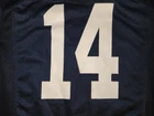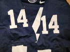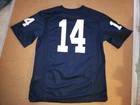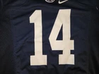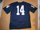 USED IN VERY GOOD CONDITION NCAA, PENN STATE NITTANY LIONS #14 HOME REPLICA YOUTH FOOTBALL JERSEY BY NIKE SIZES IS YOUTH LARGE---pit to pit is 19" inches & top to bottom is 27" inches IT IS MADE OF 100% POLYESTER IT IS BLUE IN COLOR EVERYTHING IS SILK SCREENED ONTO THE JERSEY EXCEPT THE NECKLINE PATCH AND BOTTOM LEFT FRONT JOCK TAG WHICH ARE STITCHED ONTO THE JERSEY I POST POSITIVE FEEDBACK AFTER SEEING IT LEFT FOR ME