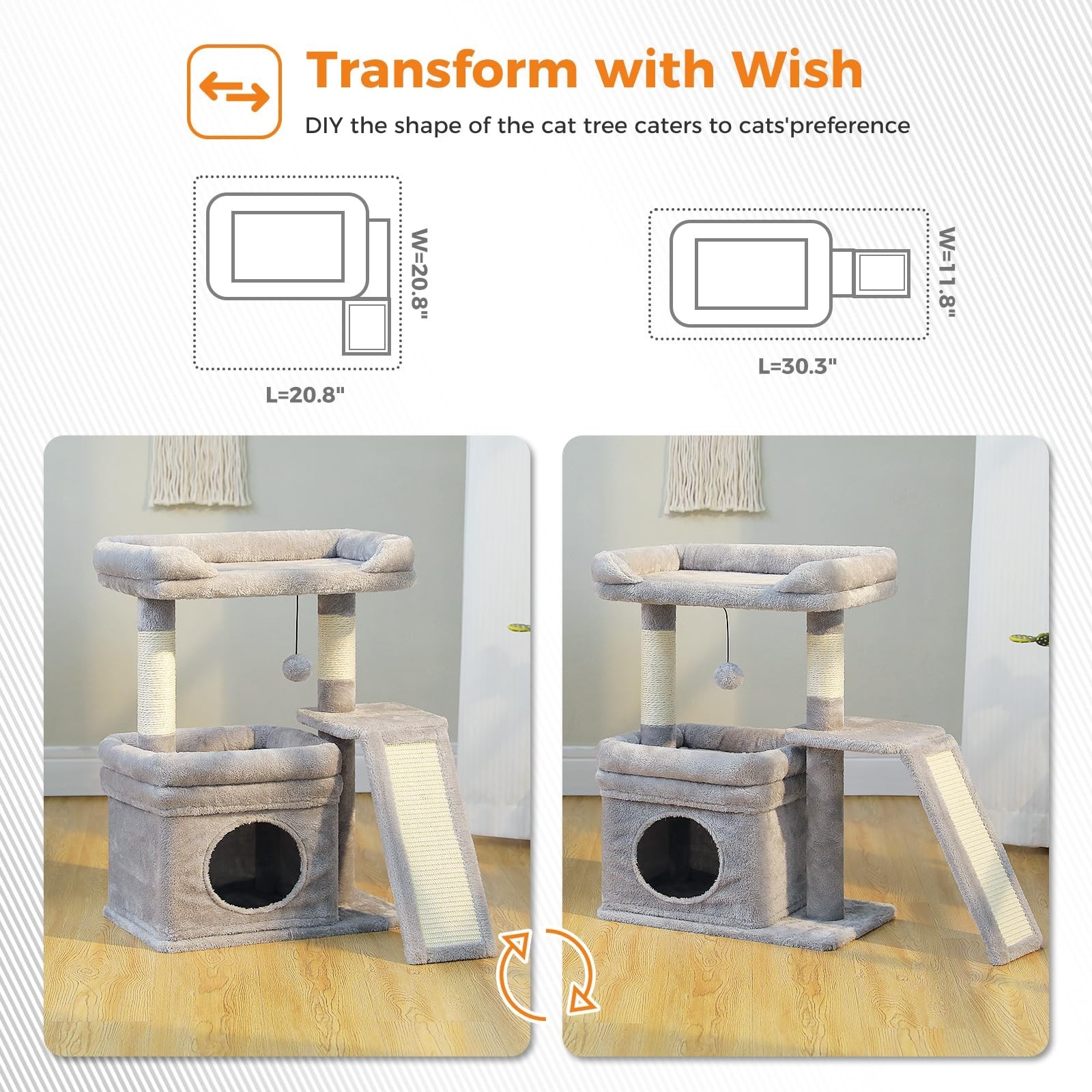 PEQULTI Small Cat Tree Tower for Large Adult Cats with Wide Top Perch, Private Cat Condo and Sisal Scratching Post&Pad for Indoor Cats, Gray Product Details Color: Grey Brand: PEQULTI MPN: AM52-AMT0326GY UPC: Does not apply EAN: Does not apply Product Dimensions: 12.2"L x 25.6"W x 19.3"H Breed Recommendation: All Breed Sizes Specific Uses For Product: Scratching Recommended Uses For Product: Indoor Material: Engineered Wood, Faux Fur, Sisal Product Dimensions : 12.2 x 25.6 x 19.3 inches; 13.82 Pounds Item model number : AM52-AMT0326GY Date First Available : July 17, 2025 Manufacturer : AM52-AMT0326GY Best Sellers Rank: #15,570 in Pet Supplies (See Top 100 in Pet Supplies) #85 in Cat Trees #85 in Cat Trees Customer Reviews: 4.4 4.4 out of 5 stars 47 ratings Item Weight: 13.79 pounds Manufacturer: AM52-AMT0326GY Item model number: AM52-AMT0326GY Date First Available: July 17, 2025 Item Package Dimensions L x W x H: 17.04 x 13.19 x 7.4 inches Item Dimensions LxWxH: 12.2 x 25.6 x 19.3 inches Item Weight: 6.27 Kilograms Brand Name: PEQULTI Target Audience Keyword: Cats, house-cats Directions: All Life Stages Model Name: AM52-AMT0326GY Color: Grey Material: Engineered Wood, Faux Fur, Sisal Care Instructions: Dry Clean Only Breed Recommendation: All Breed Sizes Included Components: Bed, Dangling Ball, Instruction Manual Specific Uses for Product: Scratching Cozy and Widened Perch: 2 nicely cushioned and an extra-large cat perch(20''x12'') with raised edge offers prime relaxing spot for your fur babies to lie down or sit on to look out the window. The top perch is designed big enough to hold 2 kittens at the same time so that these 3 good friends can enjoy a nice sleeping or playtime together Better Optimization: This small cat tree for indoor cats is upgraded from our PEQULTI popular cat tower with more functions and stablity. And there are three colors to choose to fit your room decor as you like Fulfill Scratching Needs: Euipped with 2 durable sisal covered scratching posts and a wide sratching pad, your furry friends will get entertainment in an unlimited time. And the cat tower can efficiently keep naughty cats away from your furniture Safe and Stable: Reinforced base plate and well-balanced design make sure your cats can easily and safely leap on or off this small but sturdy cat tree for large cats. What's more, a scratching pad also provides an additional 50% stability Easy to Install and Nice Looking: Its attractive look will match with any room in your house like a piece of nice pet furniture rather than a jungle gym. All the necessary tools are included, just following the instruction step by step. Its super easy to set it up. Pls feel free to contact us PEQULTI if you have question about this item
