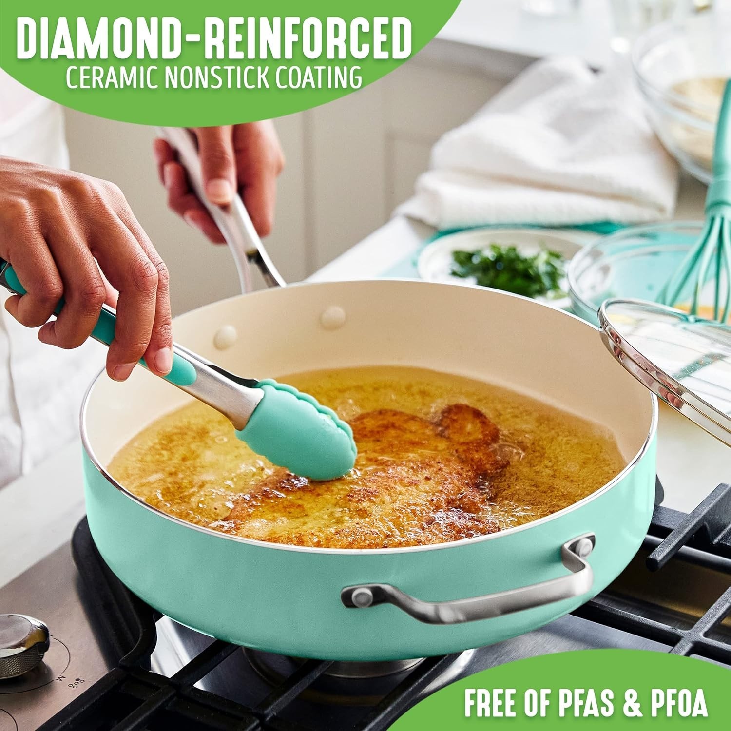 $ 10.5612-Inch Nonstick Ceramic Frying Pan Skillet with Lid 5.5 Quart Pot