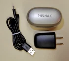 PHONAK LUMITY L30-R WATERPROOF Bluetooth Rechargeable RIC Hearing Aides. Cleaned and Sanitized. PHONAK, Waterproof AUDEO LUMITY L30-R, Bluetooth, Rechargeable Hearing Aides. Waterproof IP68 rating for fresh water to a maxim depth of 1.5 meters for up to 30 minutes. RIC Receiver in Canal. These Lumity hearing aides have the latest, most up to date, advanced listening technology and will provide the most filters and programs, making these devices ideal for those with active lifestyles. The Audeo Lumity 30 will deliver quality sound in any environment. They are constructed with superior bluetooth connectivity. Excellent condition. Included: Left and Right Lumity Audeo L30-R hearing aides, Charging case, Chord and plug, Cerushield wax trap disc, cleaning tool and assorted ear buds, Zippered Travel Case. Warranty expires 2026 Exceptional set, ready for programming to new user's exact hearing requirements. Color: Silver Size 1M Receiver Wires Free Shipping Please Note : It is important to complete a hearing examination from a qualified audiologist prior to any transaction and to follow up with device programming based on a professional hearing evaluation.