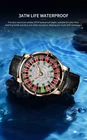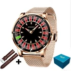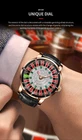 Product description: Model: P6616,P6617 Movement: NH35 movement Case: Material - 316L stainless steel Diameter: 46 mm Case thickness: 16 mm. Band width 25 mm Water Resistant: 30 M Glass: Mineral strengthened glass Dial Color: Black roulette, Diamond roulette Hands: Two luminous hands Buckle: Folding safety buckle(With PINDU Logo) PINDU Las Vegas Roulette Table Top Theme Watch to Have a Good Time with You Men's Watch