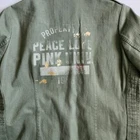 Size: Medium Color: Green Preloved Front pockets Brand Logo Peace sign Button closure Collard Small stain inner jacket (pictured) 100% Cotton Measurements are approximate Pit to pit 18" Length 24" Sleeves 20" Tags: spring, summer, fall, winter, army, casual, vacation, denim, weekend, party, date night, teens, PINK, Victoria Secret