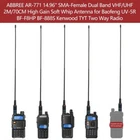Specifications: Model: ABBREE AR-771 Band: Dual band VHF/UHF Connector: SMA-Female Frequency: 144/430MHz Gain: 2.15dBi Max power: 10W VSWR: less than 1.5 Impedance: 50ohm Radiation: Omni Length: 14.96 inch/38c m COMPATIBLE MODEL Almost All of Baofeng: UV5R(All models),UV-82,BF-F8HP,BF-F8+,BF-H5,BF-H6,BF-H7,TP-8Plus,UV-S9Plus,BF-999/888/777/666s/777s/888s etc Baofeng Radio Models; Almost All of Kenwood: for Kenwood TH: TH-D7,TH-D7A,TH-D7AG,TH-D7E,TH-F6,TH-F6A,TH-F7,TH-F7E,TH-G71,TH-G71A,TH-G71E,TH-K2,TH-K2A,TH-K2E,TH-K2ET,TH-21,TH-21AT,TH-21BT,TH-22,Th-22A,TH-22At,TH-22E,TH-25,TH-26,TH-27 for Kenwood TK: TK-208/308,TK-220/320,TK-240/340,TK-240D/340D,TK-248/348,TK-250/350/353,TK-260/360,TK-260G/360G,TK-270/370,TK-270G/370G,TK-272G for Kenwood KPG: KPG27D,KPG29D,KPG48D,KPG49,KPG55D,KPG56 D,KPG62D,KPG66D,KPG69D,KPG70D,KPG74D,KPG75D,KPG77D,KPG82D WOUXUN:KG-689, KG-689 PLUS, KG-669, KG-669 PLUS, KG-659, KG-699E, KG-UVD1; PUXING:PX-777, PX-777 PLUS, PX-666, PX-888 QUANSHENG:TG-K4AT, TG-2AT, TG-45AT, TG-42AT, TG-22AT, TG-25AT, TG-UV WEIERWEI:VEV-3288S, VEV-6288, VEV-3288 LINTON:LT-3288, LT-6288, LT-3188, LT-2188, LT-3260, LT-3268, LT6188, LT3288 HYT:TC-268, TC-268S, TC-368, TC-368S, TC-370S, TC-500, TC-500S TYT:TH-UVF1 T2 T3 F6 300 500 600 800 900 9900 Note:Suitable for much SMA-Female Connector Radio Models. High Gain Soft Whip Antenna for Baofeng Kenwood TYT Two Way Radio This Antenna is about 14.96 inch/38cm length, light weight and easy to carry, and is a must for outdoor and camping usage. Package inculding one Rubber gasket to protect the antenna connector base of your radio