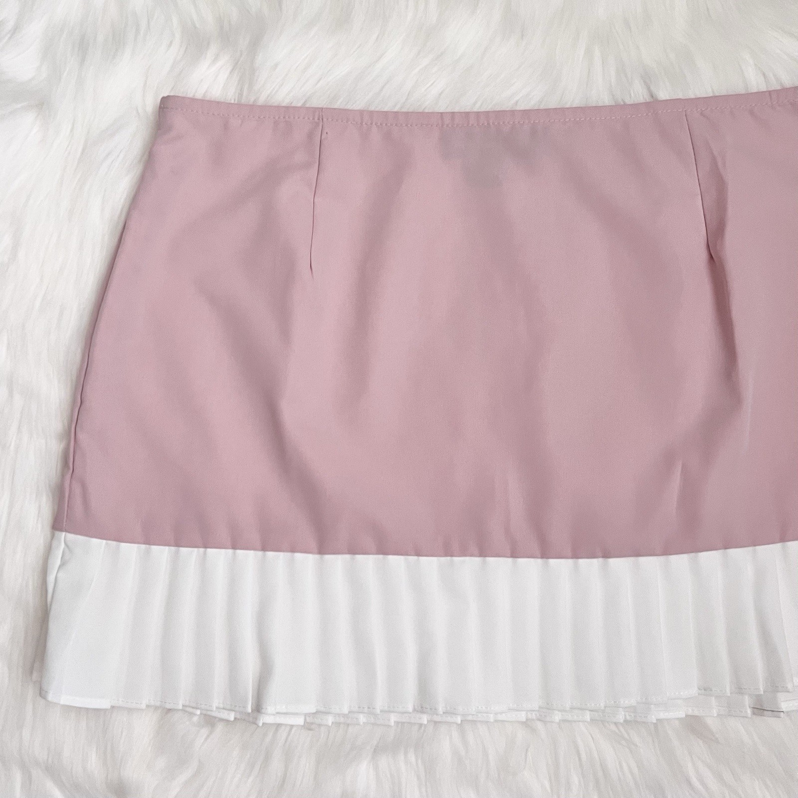 PrettyLittleThing Pink Woven Contrast Pleated Mini Skirt Size 6 100% Polyester Side Zipper #prettylittlething #miniskirt #preppy #coquette #pink Approximate Measurements (straight across): Waist 15” Length 13” 2.9 pink woven, pleated mini, side zipper, polyester skirt, pastel fashion, preppy style, girly aesthetic, layered hem, lightweight fabric, feminine look