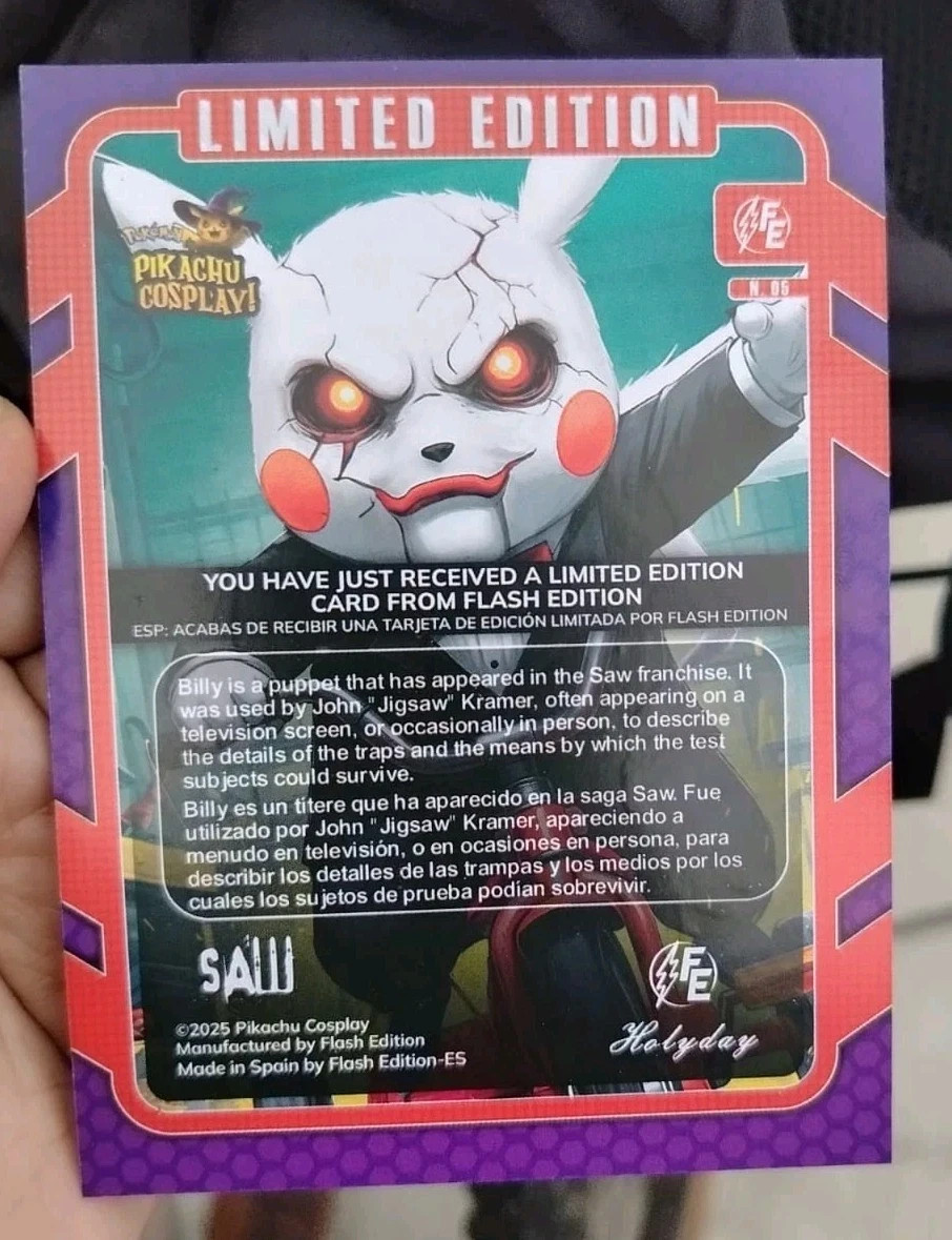 Plantilla Alegre POKEMON PIKACHU COSPLAY 2025 PERU ( 12 BOXES) FLASH EDITION 1 BOX = 30 PACKS 1 PACK = 5 CARDS INCLUDES 1 JUMBO SPECIAL CARD PER BOX WORLDWIDE TRACKED SHIPPING COMBINED SHIPPING CD-015