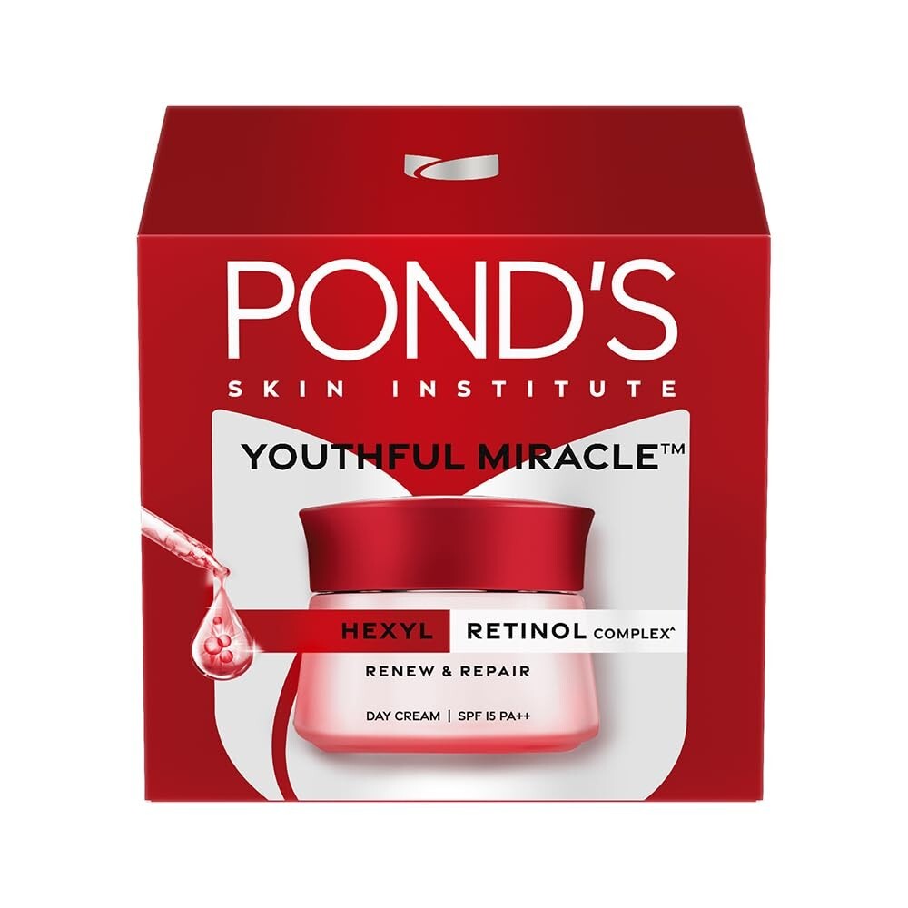 Product description Pond’s Youthful Miracle Day Cream Renew & Repair Formulated by experts at Pond’s Skin Institute with 150+ years’ experience of pioneering skincare with superior science and technology. This Hexyl-Retinol cream cream is clinically proven to improve skin quality. Born from 30 years of research, Hexyl-Retinol technology is a Unilever patented technology that combines industry’s most potent triple AA & SL actives, Hexylresorcinol + Retinol-c + Niacinamide. Hexylresorcinol is a brightening powerhouse, reduces dark spots and boost skin’s radiance. While Retinol-C is a gentle form on ‘Retinol’, which plumps fine lines and improves skin elasticity. In a consumer study conducted in 2016, majority of women reported visible results after using the Youthful Miracle Night Cream. - 93% saw brighter and more even skin - 82% saw improved skin texture - 80% notice a youthful, radiant glow Incorporate this day cream into your skincare regime for smooth, youthful skin. With it’s gentle yet effective formula, you can trust New Youthful Miracle Day Cream to deliver the results you desire. -Visibly reduces spots in 2 weeks - Visibly bright, bouncy skin within 1 week - Improves skin elasticity from Day 7 Experience the miracle of your ultimate youthful skin with the entire POND'S From the manufacturer Discover More cleanser Day Cream Add to Cart Night Cream Add to Cart Serum Add to Cart Whip Cream Buying Options Customer R