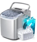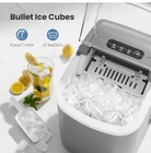 Portable countertop ice maker machine. 9 bullet shaped ice cubes ready in 6 minutes, 26lbs/24h, self cleaning function with ice scoop and basket.