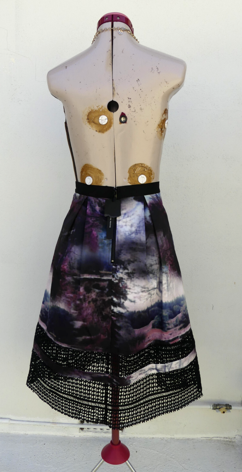 This gorgeous SKIRT is fully lined (to the sheer lace) and fastens with a zip and hook & eye at the back. It is a full, pleated style with tiered black, sheer lace at the hem. It is a gothic landscape / trees print and the main colours are black, purple, pink, blue, white, silver, grey and brown. It is from PORTMANS and is a size Aus 8 (USA 4 / UK 6 - 8), but please check the measurements below, to ensure a good fit. The approximate measurements are: Waist: 66cm Length: 67cm For any other measurements, please use the ‘Contact Seller’ button. It is Brand New, With Tags. Lots of other information about this fabulous skirt can also be found in Item Specifics. GGG001 Please take a look at the tons of other gorgeous items I have available in your size! I love to combine postage and save you money! So if you are purchasing more than one item from me, please wait for me to send you a combined invoice, or press the 'Request a Total' button in your Cart before paying. I rate my items in the following way: BNWT / BNWOT: Brand New, With Tags or Brand New, Without Tags (some part of the tag will still be attached). New items that have never been worn. EXCELLENT: has been worn, but shows very few actual signs of wear. GOOD: has been worn and is showing light signs of wear. FAIR: has been worn and is showing more signs of wash/wear - or has a small fault, which will be clearly described in the listing I am only human and can make mistakes in my listings and descriptions - so if for any reason you are unhappy with your purchase, please contact me using the 'Contact Seller' button first, so we can quickly resolve the issue. This item comes from a SMOKE FREE HOME but the odd puppy hair may drift in due to the fact she is my darling shadow throughout the day.