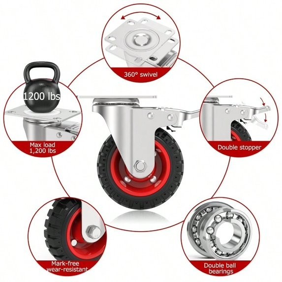4 Swivel Caster Wheels With Safety Dual Locking And Rubber Tire Wheels Heavy Duty 300 Lbs Per Caster For Workbench Cart Trolley Dolly Cabinet Compact Rubber Castor Wheels 4Packs