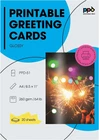 Use this printable greeting card paper / card stock to print your own professional looking greetings cards, christmas cards, thank you notes, invitations, announcements for any occasion, with your own personal creative touches, right from the comfort of your own home. Characteristics: Size - 8.5X11" Weight - 64LBS Finish - Glossy Pack Size - 20 Cards Features: Instant dry - Handle right after printing - no smears! Blank - No watermark or logo on either side. Printable on both sides - Best color gamut and sub tone reproduction (photographic paper quality) on the outside coated side and simple graphics and text in normal quality on the uncoated internal side. Machine Pre-Scored - Easily fold the card in the middle after printing. Compatibility: Printer and Ink - Suitable with all Inkjet printers using every day normal inks. Step-by-step printer settings set-up included in the pack. High-Quality Performance: Our printable greeting cards are crafted from heavyweight 10.9 mil (64 lb/240 gsm) cardstock, offering exceptional durability and a premium feel. Each set includes 20 sheets, providing ample material for all of your projects. The cards feature a glossy finish on the outside for enhanced photographic quality while the matte finish on the inside ensures clean, readable text. Measuring 8.5 x 11 inches, they can be easily folded to 5.5 x 8.5 inches along the prescored line. Versatile for Any Occasion: These blank white greeting cards are perfect for a wide range of events, including birthdays, wedding invitations, and thank you notes. The customizable nature of these cards allows you to add your own photographs and text, making them ideal for creating personalized invitations, heartfelt greeting cards, or stylish thank-you notes. Our versatile card paper accommodates all your creative needs, offering flexibility for any occasion. Easy to Use: Each set comes designed specifically for 5.5 x 8.5 inch note cards. The prescored design of the cards simplifies the folding and assembly process, making it an ideal DIY card project. Whether you're a beginner or an experienced crafter, you'll find this set perfect for creating personalized cards with ease, ensuring a smooth and efficient greeting card making experience. Custom Prints with High-Quality Imagery: The glossy finish on the exterior of these blank white printable cards offers a stunning high color gamut and photographic quality, making your images and designs stand out with vibrant, eye-catching detail. Meanwhile, the matte interior is ideal for clean, readable text and personal messages and greetings offering extreme functionality. Whether you're printing photographs or detailed graphics, these note cards deliver exceptional results. Compatible with All Inkjet Printers: Our greeting card paper is compatible with any inkjet printer, whether you use dye-based or pigment-based inks. The unique design allows you to print on both the glossy exterior and the matte interior, ensuring you can customize both sides. Enjoy consistent, high-quality prints that bring your custom designs and photographs to life. With hassle-free printing, you can achieve reliable, professional results every time, making your greeting cards stand out. Trusted Quality by Photo Paper Direct: Photo Paper Direct has been a leading quality supplier since 1992, known for its commitment to excellence. All products are proudly made in the United Kingdom, ensuring highest standards of quality and craftsmanship. With decades of experience, Photo Paper Direct continues to deliver exceptional products that meet the demands of both professionals and hobbyists alike.
