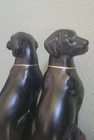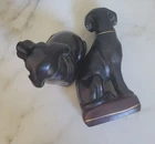 These PR 2 Antique VTG Andrea by Sadek Style Black Labrador Porcelain Bookends Statues are a unique and elegant addition to any bookshelf or collector's display. Crafted from high-quality porcelain, these asymmetrical bookends feature a 8 inch black dog design that captures the subject of your favorite pet. The antique finish adds a touch of nostalgia to the piece, making it a charming and functional decorative collectible for those who appreciate animal-themed items. These bookends are a must-have for any dog lover or collector of unique and vintage decor. There are no chips or cracks on these heavy porcelain/ clay bookends. No damage has been noted. E- mail me with questions. Thanks for checking out my auctions!