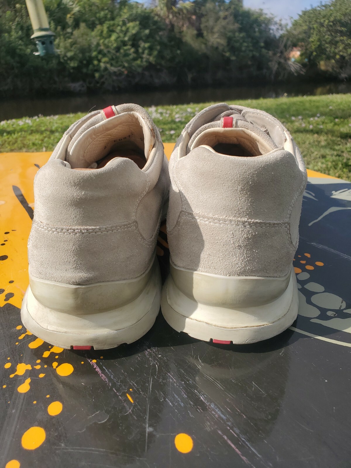 PRADA Americas Cup All Suede Sneaker Shoe Mens 9.5. These do show normal wear, please Review all photos. Shoe trees are not included Color is a pale Gray.