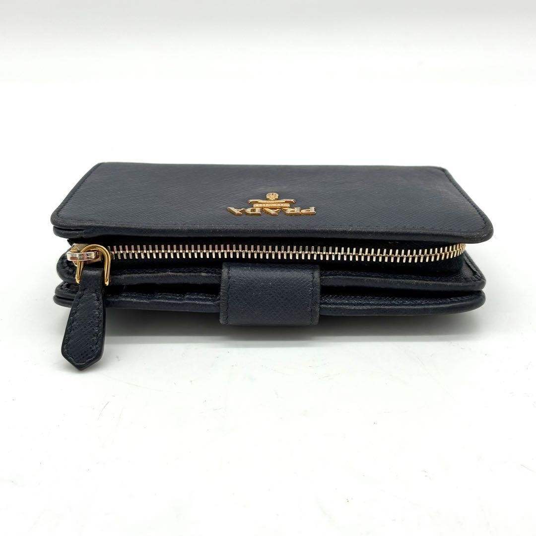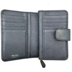PRADA Bifold Wallet L Zip Fastener Logo Hardware Saffiano Leather Black