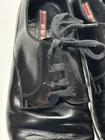 Prada Black/Gray/White Oxford Sneakers, Men's US Size 9. These designer shoes blend classic oxford styling with casual sneaker comfort, perfect for an elevated everyday look. Made with high-quality materials, they feature a sleek black upper, gray and white accents on the sole, and a lace-up front. Good pre-owned condition with visible wear on the soles and some creasing on the leather, consistent with normal use. A versatile luxury shoe for various occasions. Zbox