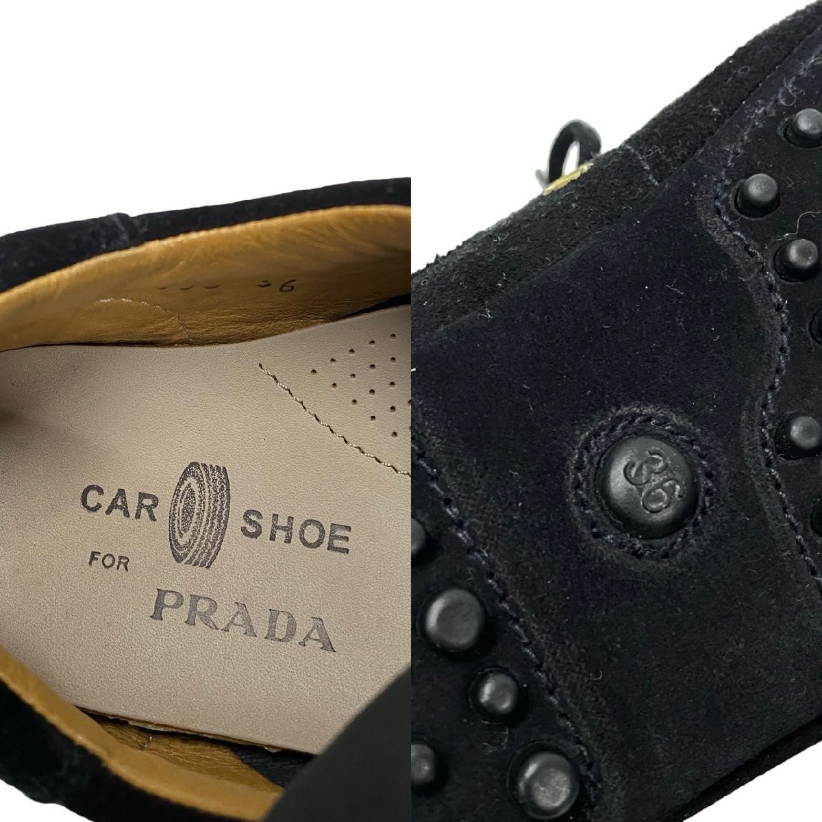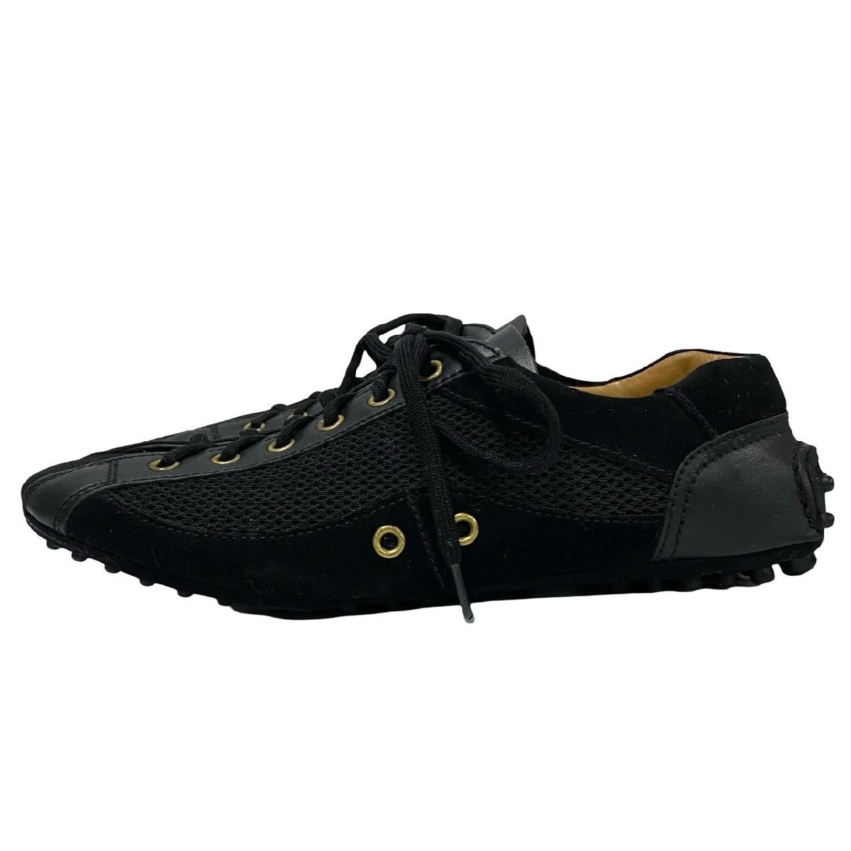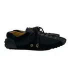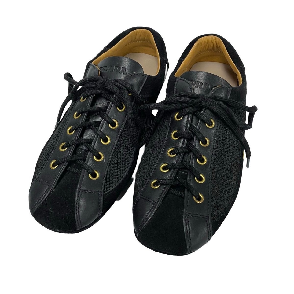$ 265.79PRADA black leather low-top sneakers with logo metal details and lace-up design in women's size 36
