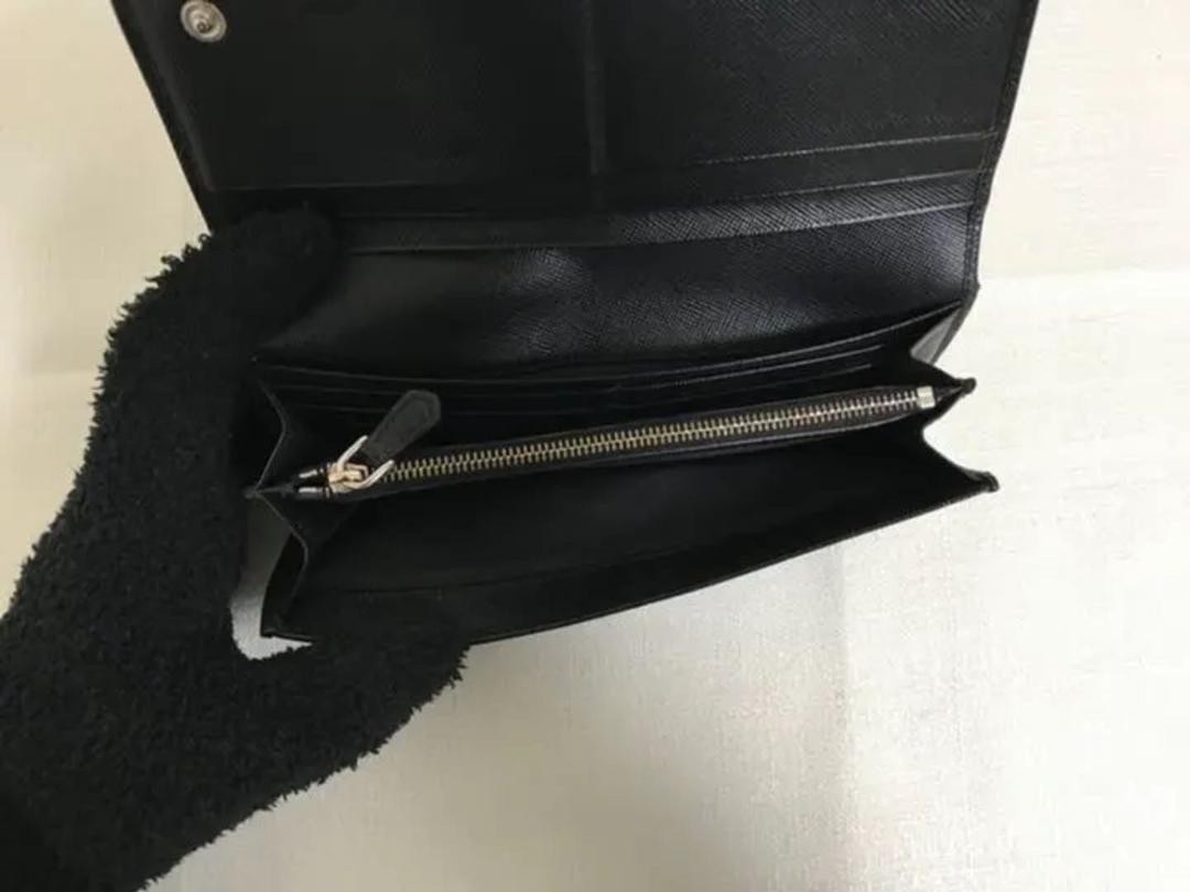PRADA Black Nylon Saffiano Leather Long Folding Wallet Bill Holder