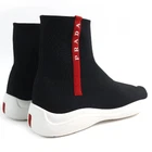 PRADA Logo Knit High Top Sock Sneakers Black White 40 with Storage Bag