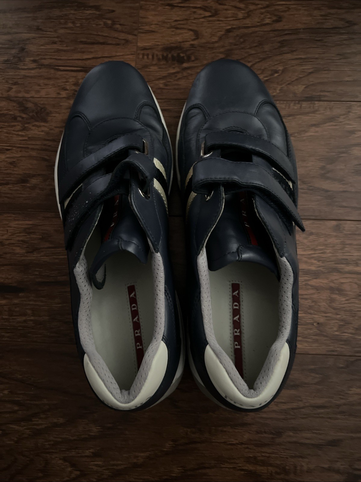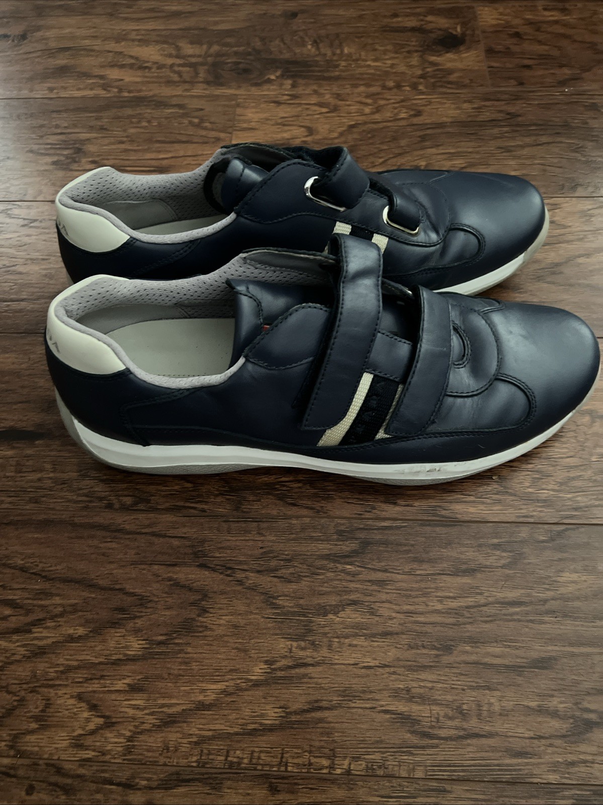 The PRADA Men's Blue Leather Sneaker in size 9 (UK) or 10 (US) is a stylish and comfortable option for casual wear. Made with high-quality leather, these sneakers feature a solid blue color with a leather lining and outsole. With a strap closure, leather upper and insole, and a standard shoe width, these sneakers are designed for all-day comfort and are perfect for the summer, fall, and spring seasons. The Italian craftsmanship and iconic PRADA branding make these sneakers a luxurious and versatile addition to any man's wardrobe.