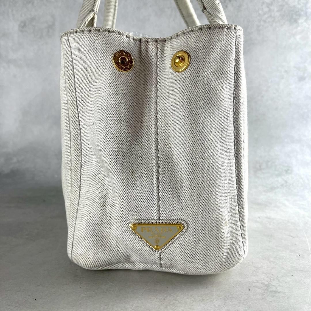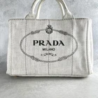 PRADA Handbag Canapa Mini Tote Bag Off White Canvas Material with White Tag Description PRADA Handbag Canapa Mini Tote Bag Off White Canvas Material with White Tag There are signs of use and damage. The interior has stains and a white tag. There is discoloration of the material, stain marks, and some scuffs mainly on the interior, showing signs of use. No accessories included, item only. Size Approx. H7.09 × W11.81 × D5.51 in Handle height: approx. 5.51 in Payment We only accept PayPal payments. Please pay within 6 days after auction is finished. International Buyers - Please Note Import duties, taxes and charges are not included in the item price or shipping charges. These charges are the buyer's responsibility. Please check with your country's customs office to determine what these additional costs will be prior to bidding/buying. These charges are normally collected by the delivering freight (shipping) company or when you pick the item up - do not confuse them for additional shipping charges.