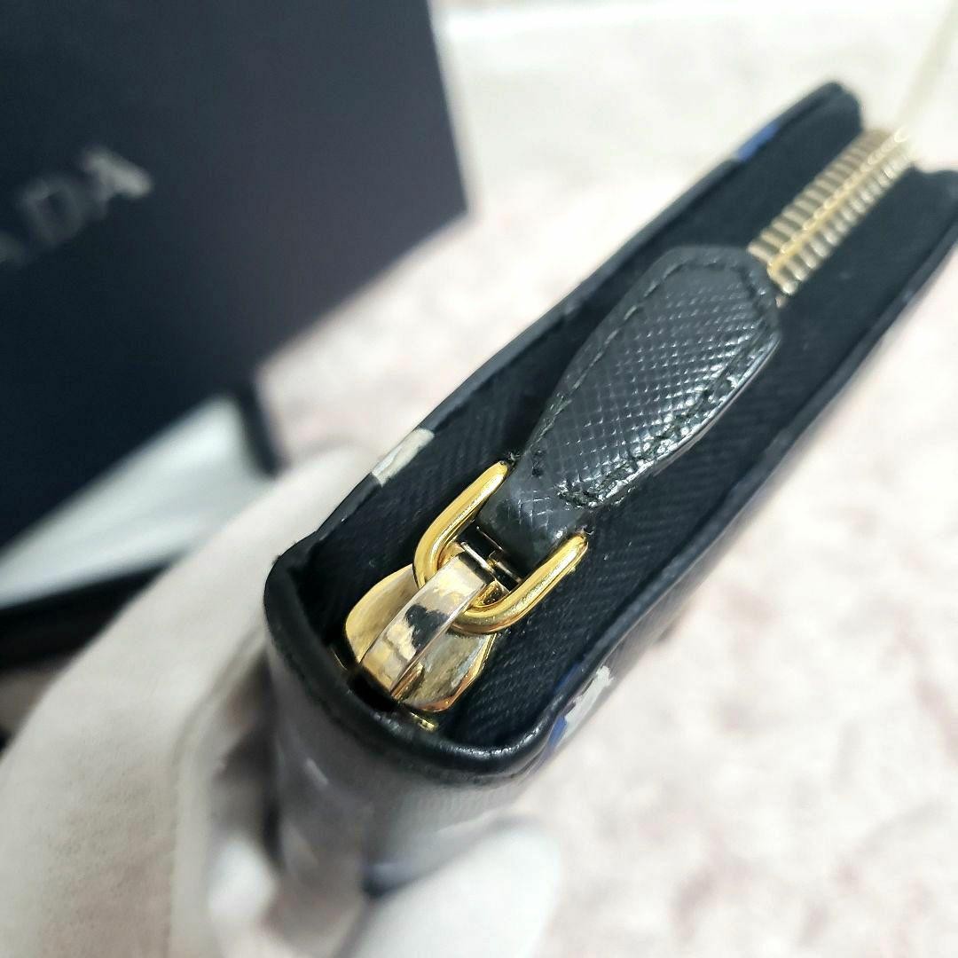 PRADA Saffiano Floral Round Zipper Long Wallet in Excellent Condition