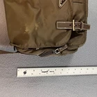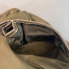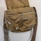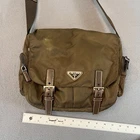 Elevate your accessory collection with the PRADA Vela Tessuto Shoulder Bag, a seamless blend of fashion and functionality. Crafted from durable nylon in a sophisticated brown green hue, this crossbody bag features the iconic triangle logo, exuding classic elegance with a modern twist. Designed for the discerning individual, the bag boasts a compact size of 11 inches in width and 20 cm in height and length, providing ample space for your essentials without the bulk. The bag's triangular shape adds a unique touch to its structure, while the leather crossbody strap in a complementary brown tone ensures comfort and durability. Whether you're navigating the urban jungle or attending a casual event, this shoulder bag encapsulates the spirit of city life and the timelessness of PRADA design, making it a versatile choice for any wardrobe.