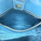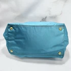 Absolutely love this Prada bag! The vibrant turquoise ribbon adds such a pop of color, and the size is perfect for daily essentials. It feels authentic and well-made, definitely a stylish and practical addition to my collection.