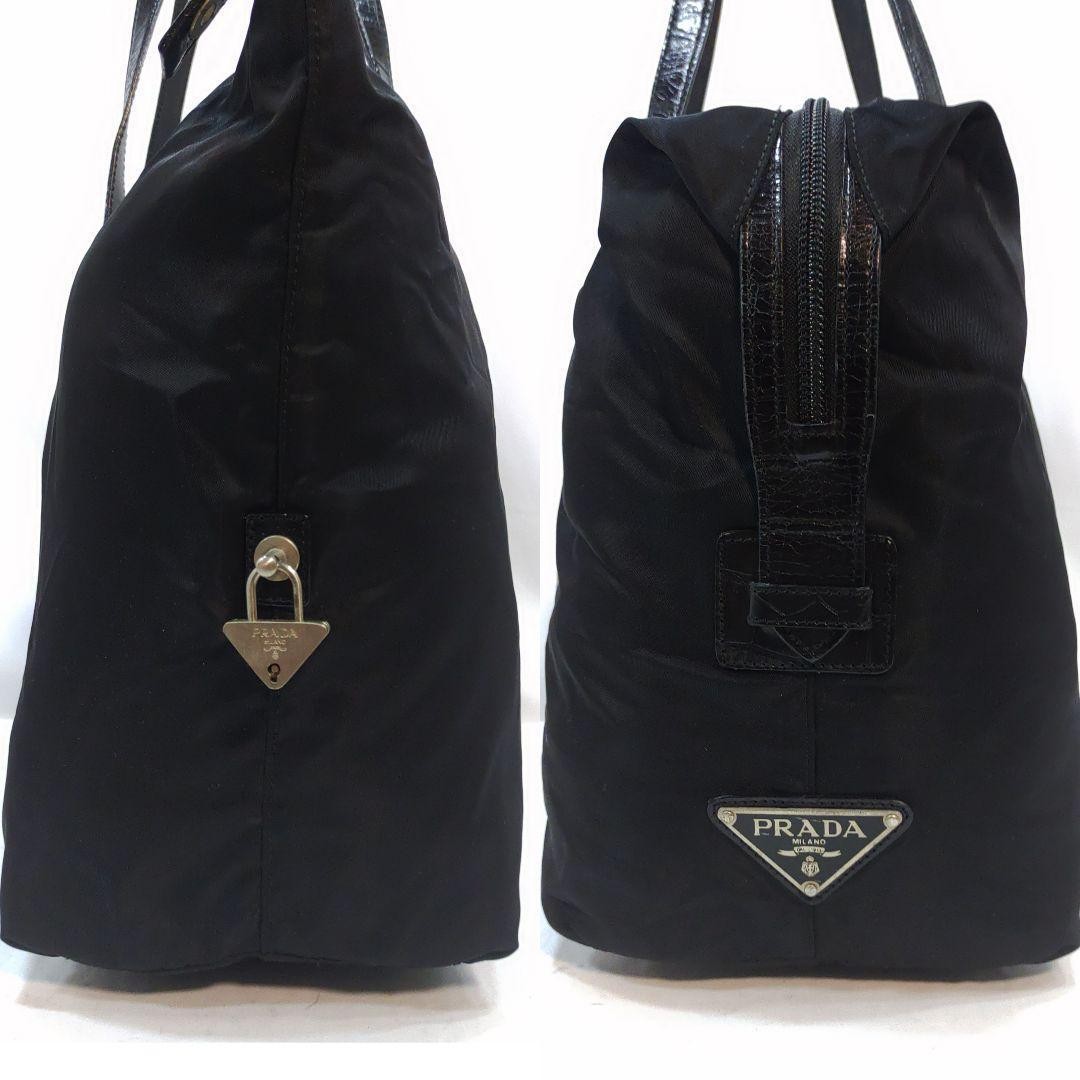 PRADA Tote Bag Crocodile Embossed Leather Nylon Shoulder Black with Key From Ja